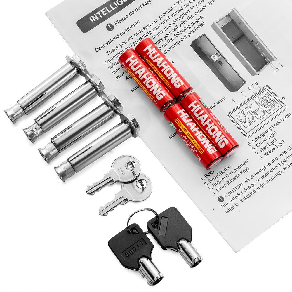 • Fully programmable electronic keypad safety lockbox with backup key access