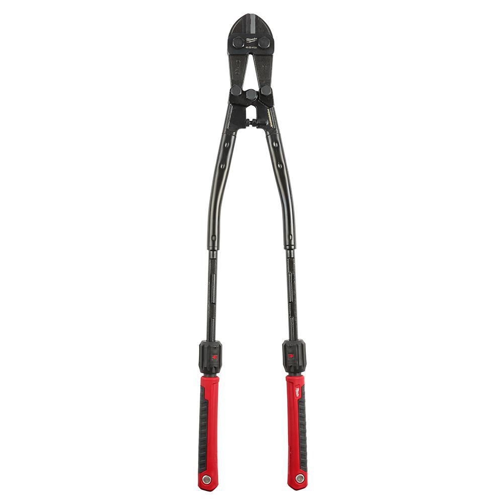 Milwaukee Bolt Cutters with POWERMOVE handles are designed for maximum versatility and durability. POWERMOVE handles extend for easier cuts in tough applications. Forged steel blades are custom heat treated for maximum durability. Bolt Lock secures the pivot bolts to prevent loosening. Comfort grip handles won't peel or slide off and offer extended user comfort. Lanyard holes are integrated through the handles for easy tethering.