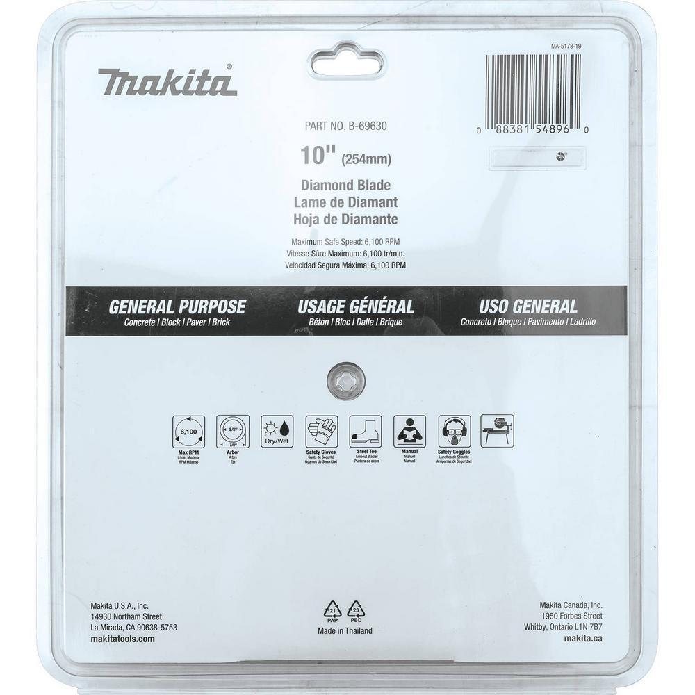 Makita Diamond Blades are designed to be used with power cut saws for making cuts in a variety of masonry materials. The high-quality steel core is expertly tensioned for true cuts and added durability. Each blade features the highest quality diamonds and the segments are laser welded for added durability and improved cutting efficiency.