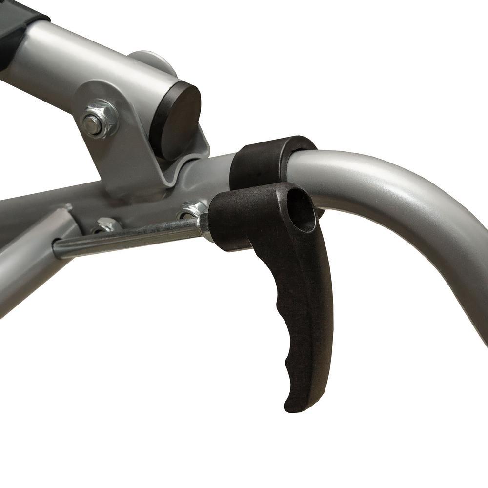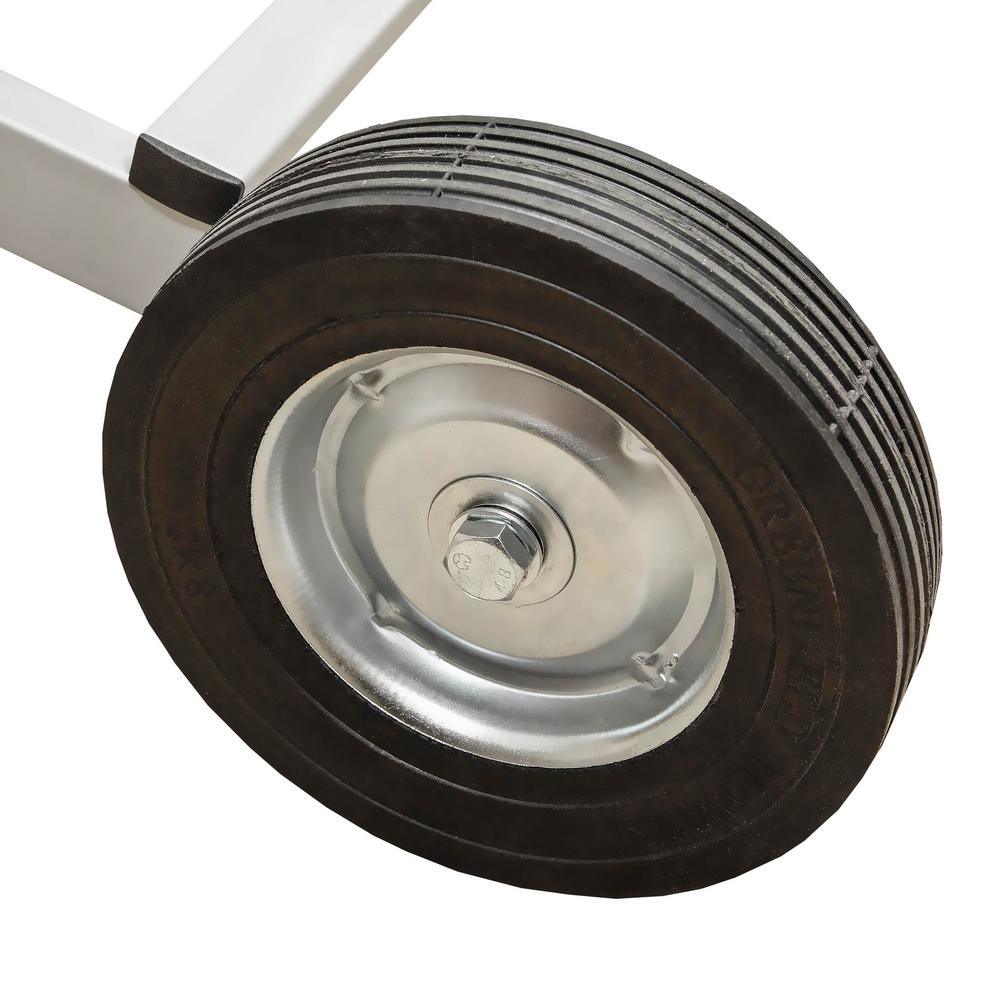 • FEATURES: Portable design with a pair of high-traction 8” wheels for mobility, an automatic locking pin release lever for quick and easy folding action/ storage, plus two adjustable solid steel plates with spaced slots for versatile mounting options