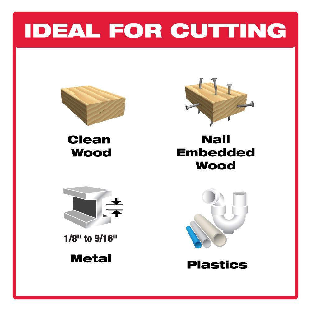 - Ideal for pruning and clean wood, nail-embedded wood and metal demolition (3/16 in.-9/16 in. thickness) applications