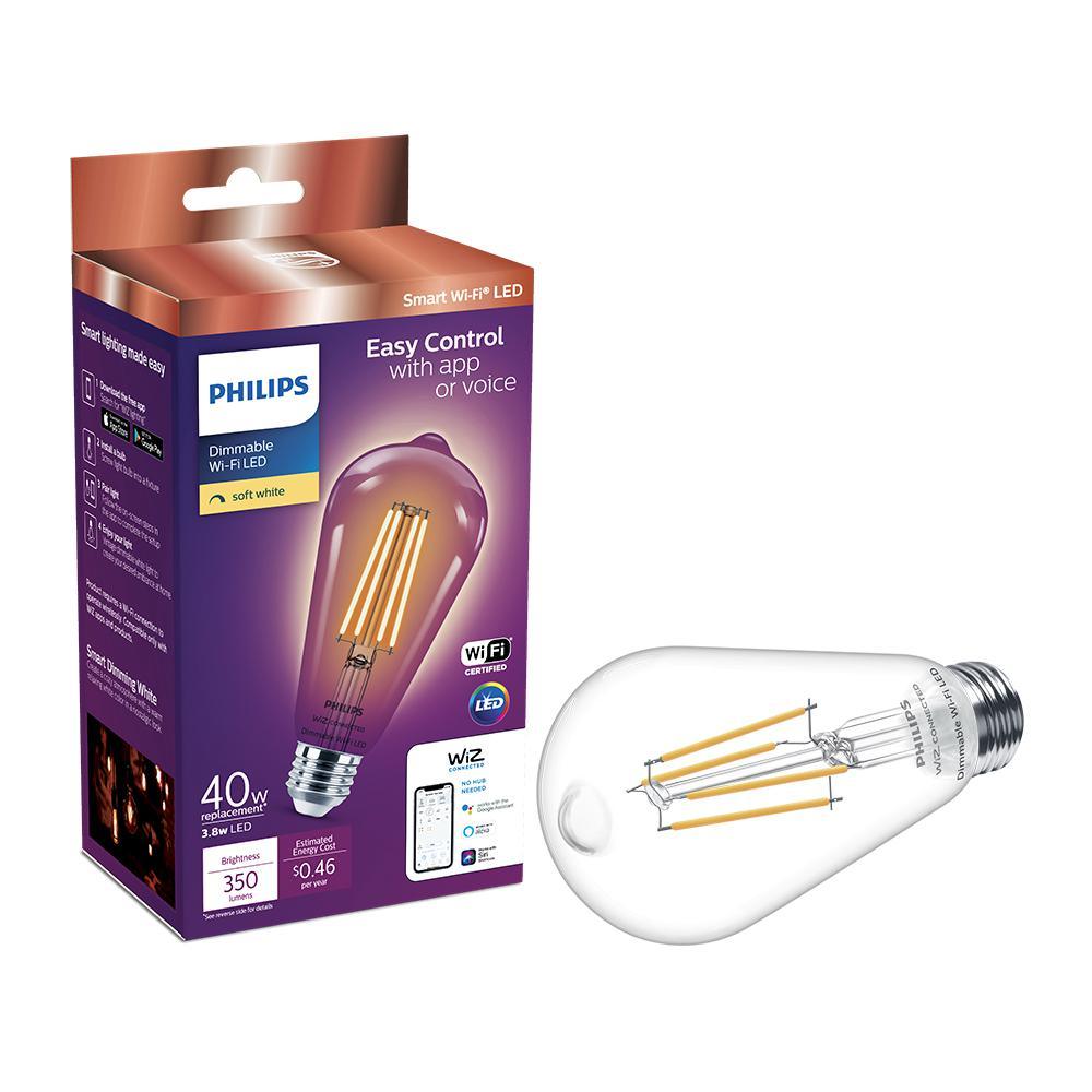 Philips Smart Wi-Fi LED lighting puts you in complete control of your lighting with smart bulbs that are easy to use, functional, and affordable. We’ve made all your favorite high-quality Philips bulbs smarter, just connect them to your existing Wi-Fi network. Smart Dimming Soft White – create a cozy atmosphere with a warm relaxing soft white color. Control your lights wherever you are using the WiZ app or your favorite compatible voice control device. Product requires a Wi-Fi connection to operate wirelessly. Compatible with WiZ apps and products along with Google Assistant, Amazon Alexa, and Siri Shortcuts.