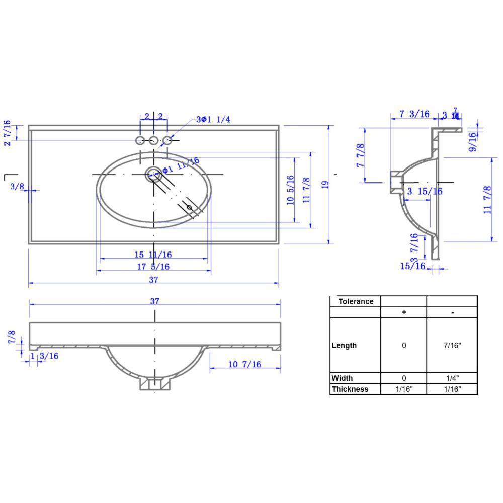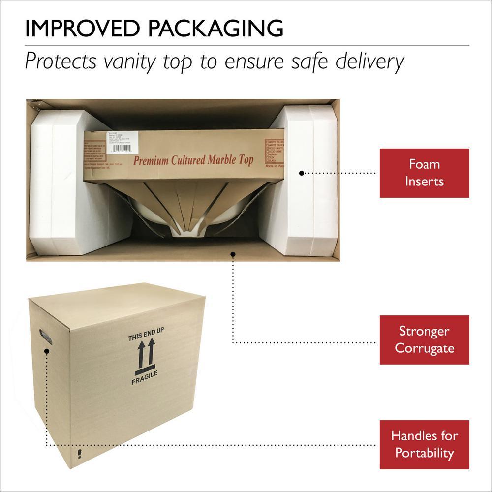 Give your bathroom that clean, classic look you've been searching for with the Design House 37 in. Cultured Marble Vanity Top with solid white finish. This spacious top features a drip free edge to help contain excess water and squared edges that evoke a more modern look. Three pre-drilled holes make installing a 4 in. centerset faucet easy and an integrated backsplash creates a barrier between your wall and the vanity to help prevent mold and water damage. The oval bowl at the heart of this top is integrated directly into the design for a seamless look. The Cultured Marble Vanity Top comes with a 5-year limited warranty that protects against defects in materials and workmanship.