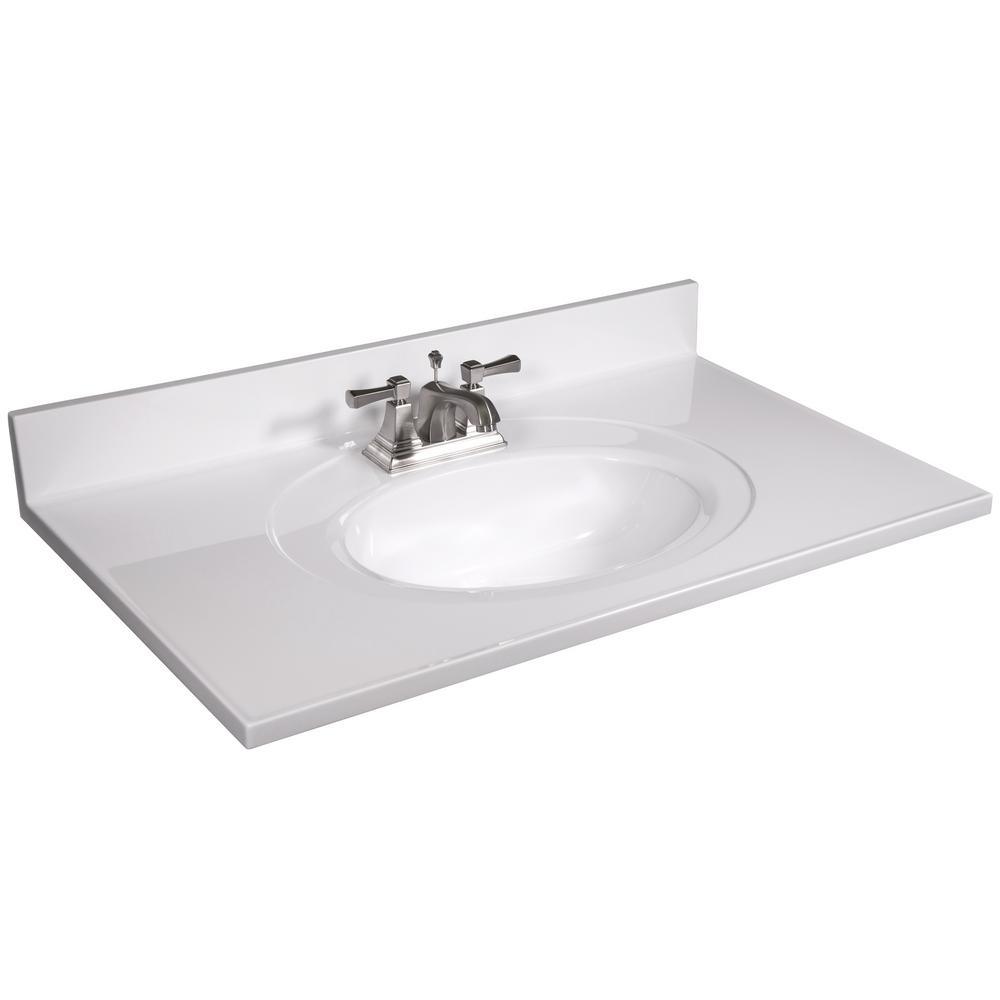 • Solid white 37 in. x 22 in. cultured marble vanity top