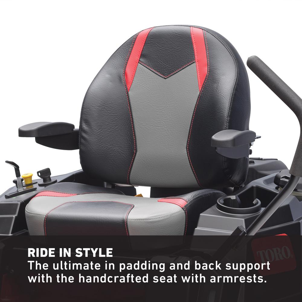 - Ride in style, ride your Toro in style with a handcrafted high-back seat with arm rests that provides the ultimate in padding and back support