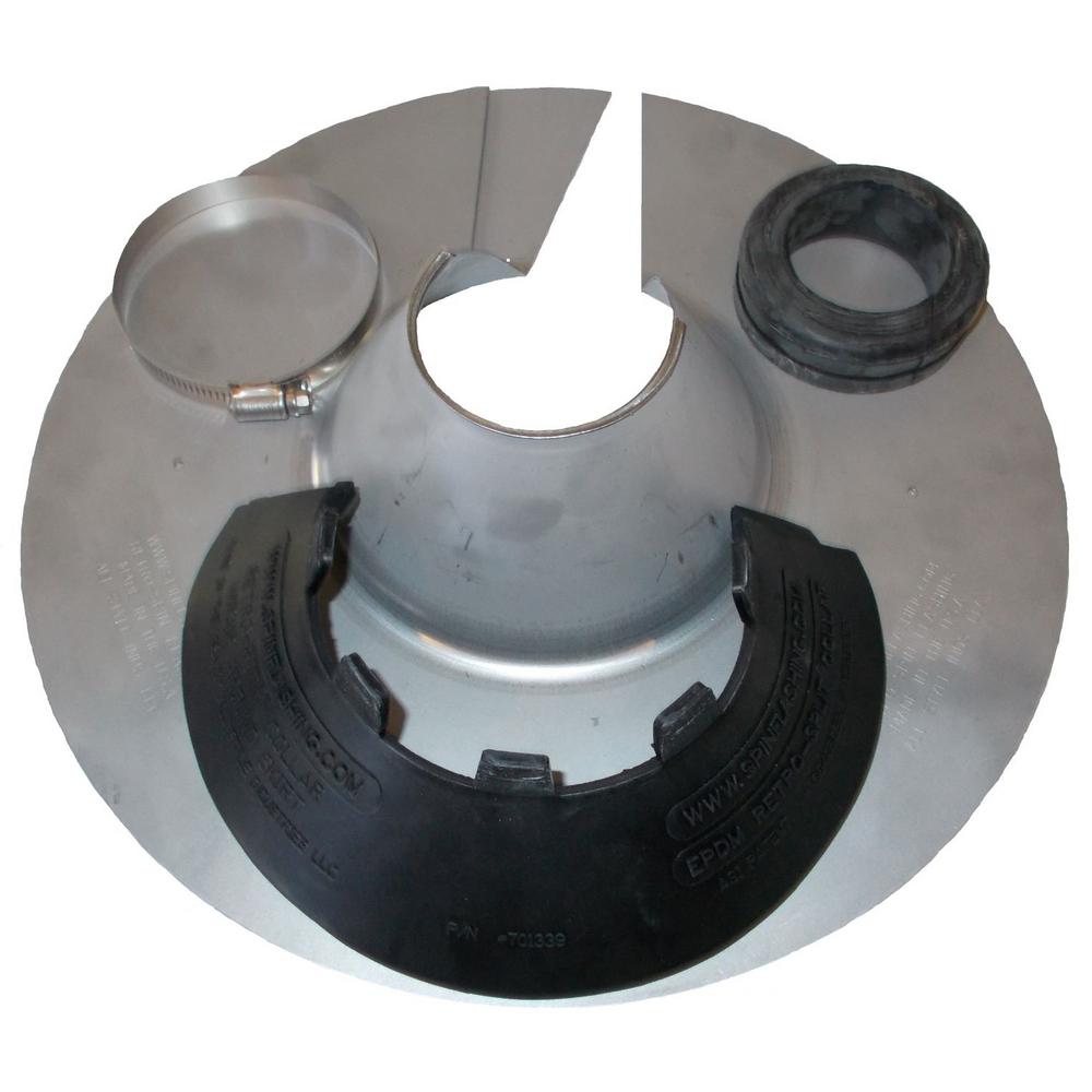 - Retro-Spin kits include one 702121 Retro-Spin galvanized steel roof flashing and one 702840 Retro-Split rubber storm collar