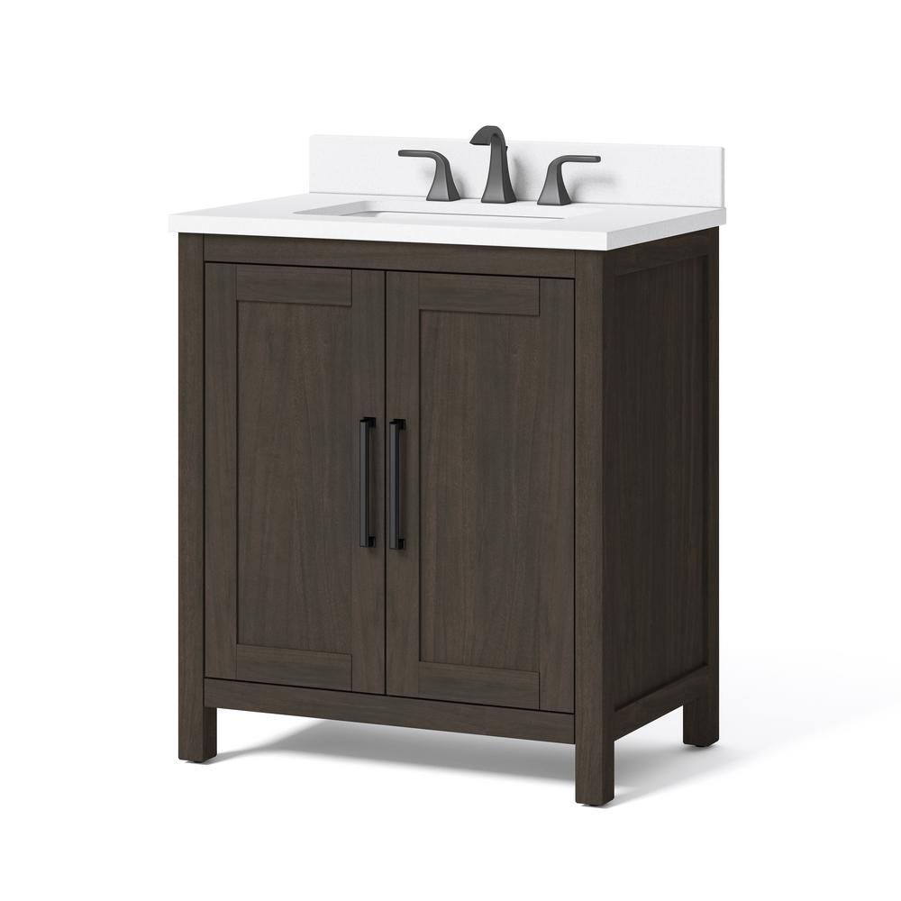 Leary 30 in. W x 34.5 in. H Bath Vanity in Dark Brown with Engineered Stone Vanity Top in White with White Basin