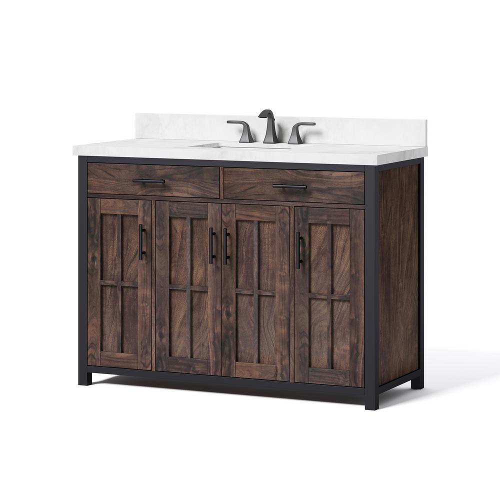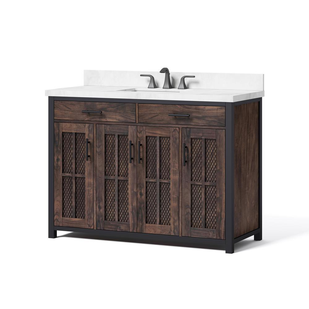 Drysdale 48 in. Wx 34.5 in. H Bath Vanity in Sable with Engineered Stone Vanity Top in Lgt Vein Carrera with White Basin
