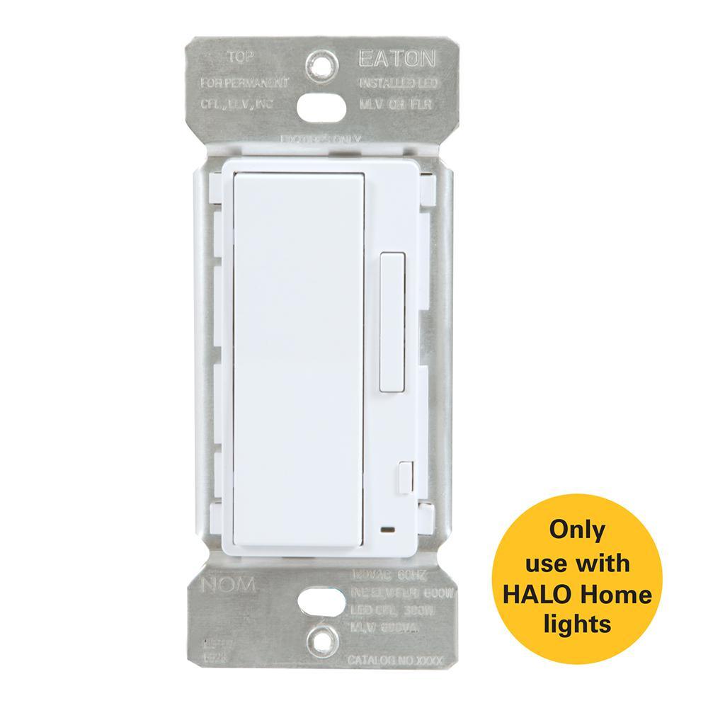 Want the ability to manage your lighting system when you’re away from home. This is the perfect smart lighting “starter kit” for you. The Halo RL56 Bluetooth Downlight installs easily, and connects to the Halo Home mobile app using a Bluetooth connection (no internet or “hub” required). From the convenience of your mobile device, you can adjust the color temperature and dim the light, or take advantage of convenient features like scene setting and automatic scheduling. You can even use voice control (via Amazon Alexa or Google Assistant, when you add the Internet Access Bridge sold separately). Complement your Halo Home smart lighting system with the In-Wall Accessory Dimmer. Designed to use with Halo Home Bluetooth light fixtures, this dimmer gives you on/off control from the wall as well as one-click access to Halo Home app functions for enhanced programming, scheduling and control. Use it as a standalone switch, or combine with multiple Halo Home In-Wall Dimmers for 3-way functionality. As a bonus: even when the physical switch is in the OFF position, you can still fully control the lights on its circuit using the Halo Home app.