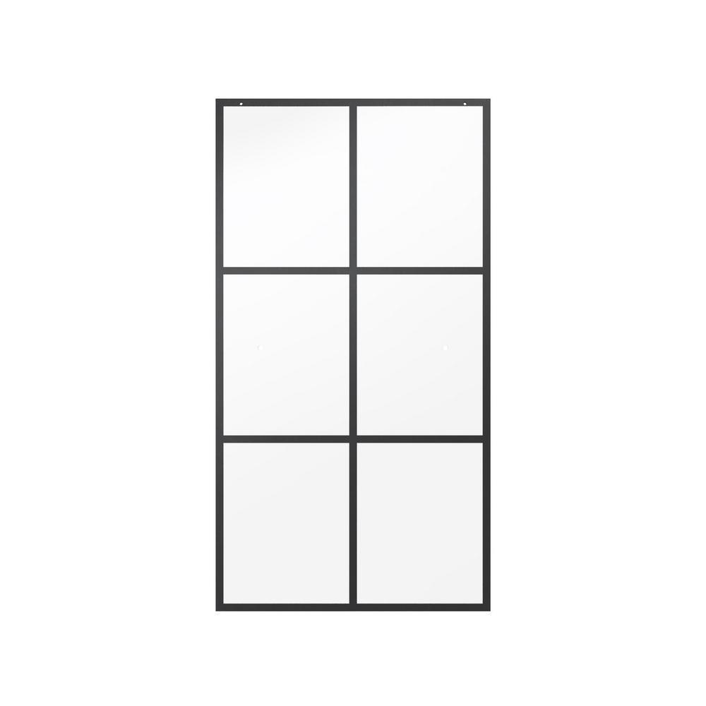 • Features a window pane pattern of black muntin bars and clear glass, providing an open, airy feel on easy-to-clean, completely frameless glass