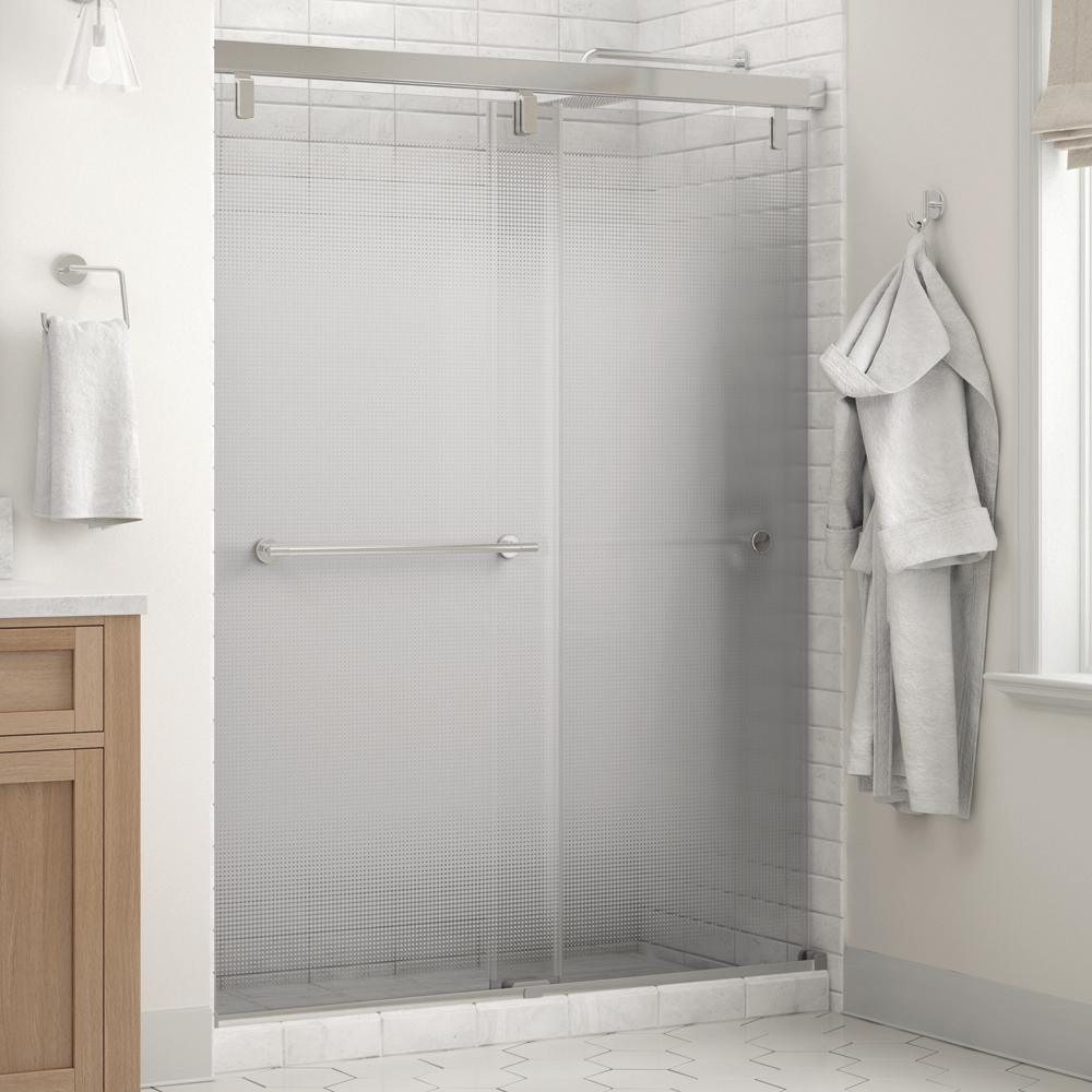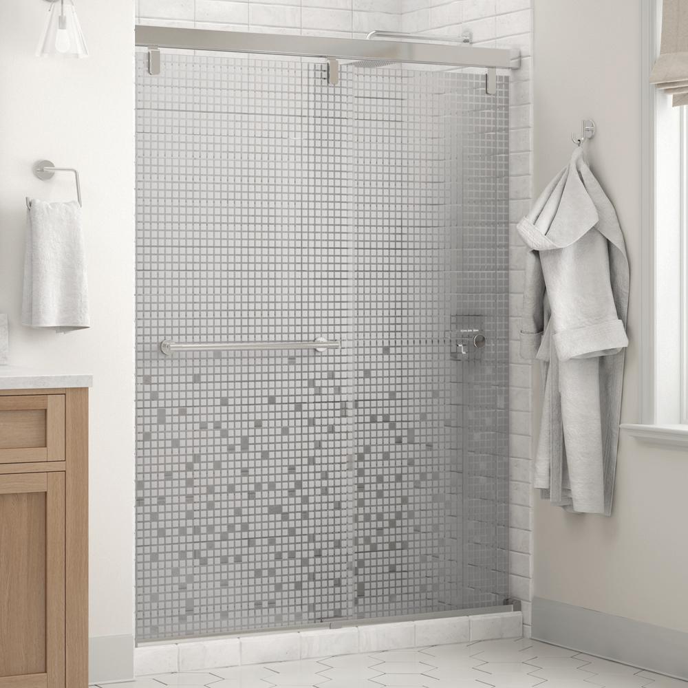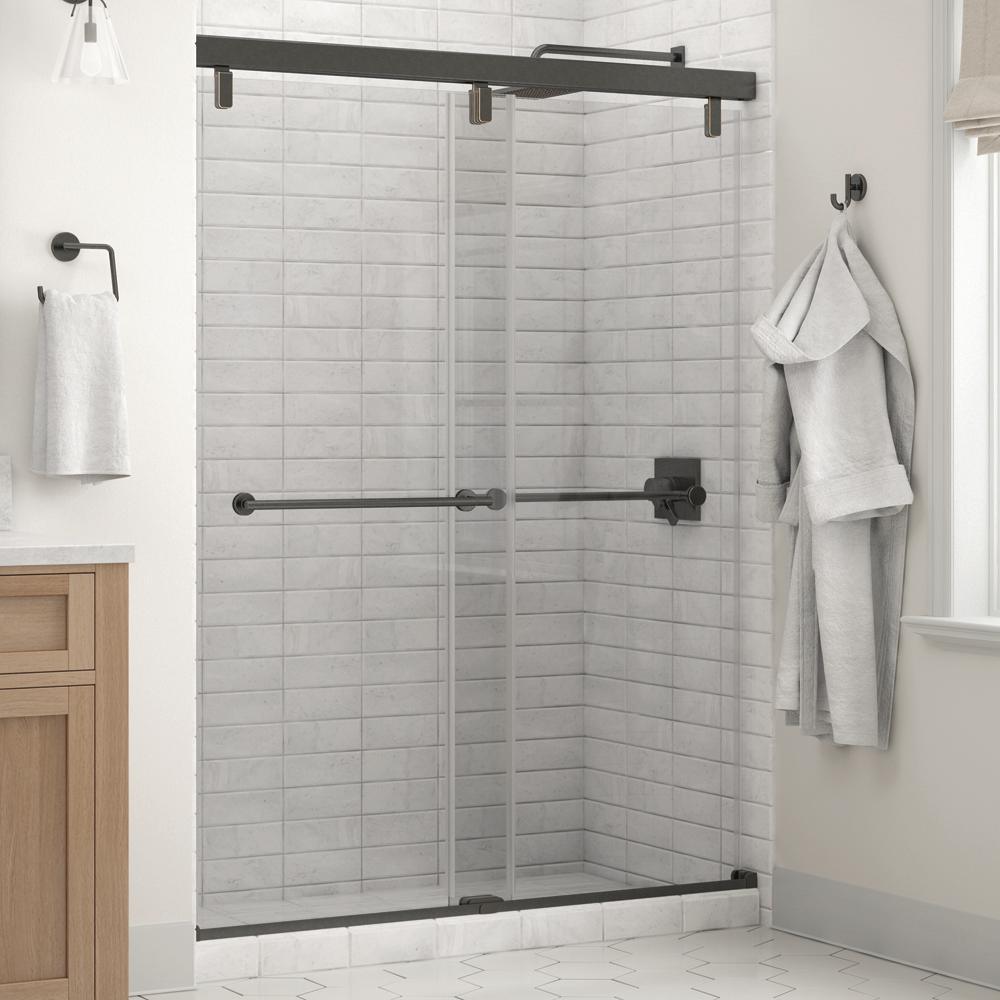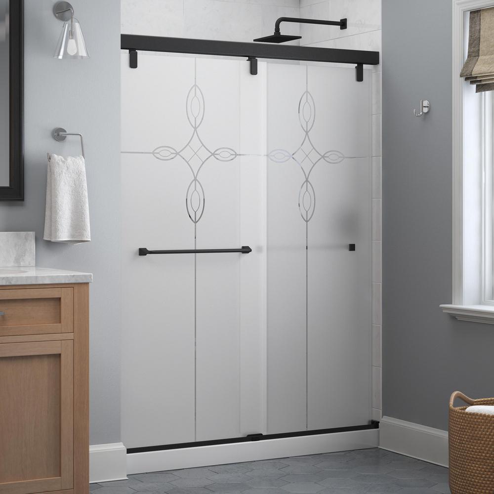 Whether you’re looking for a moderate DIY project or working on a bathroom remodel, upgrading your bathroom with a new sliding shower door is easy with the Delta 1-2-3 custom sliding shower door program. Delta’s custom glass shower door program offers 1000s of design combinations by choosing your glass shower panels, shower door track, and shower door handles to build a unique, personalized glass shower door. Clean, sleek and modern, the Mod shower door track in matte black features a soft close system paired with a reversible flat track, and minimal metal components, for the perfect balance of form and function. Make a statement with standard 1/4 in. ANSI certified tempered glass shower panels, featuring a window pane pattern of black muntin bars and clear glass, providing an open, airy feel on easy-to-clean, completely frameless glassThe Everly sliding shower door handles in matte black feature two convenient towel bars for extra bathroom storage in a transitional design silhouette that beautifully combines contemporary and classic qualities.