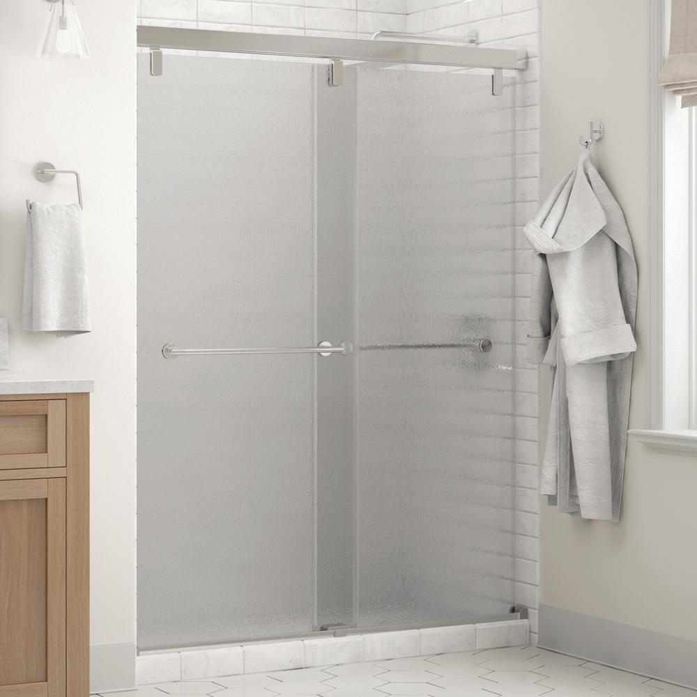Mod sliding shower doors can be opened from left or right with full by-pass (both panels slide) design of track and glass panels