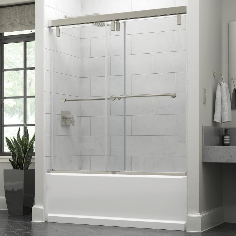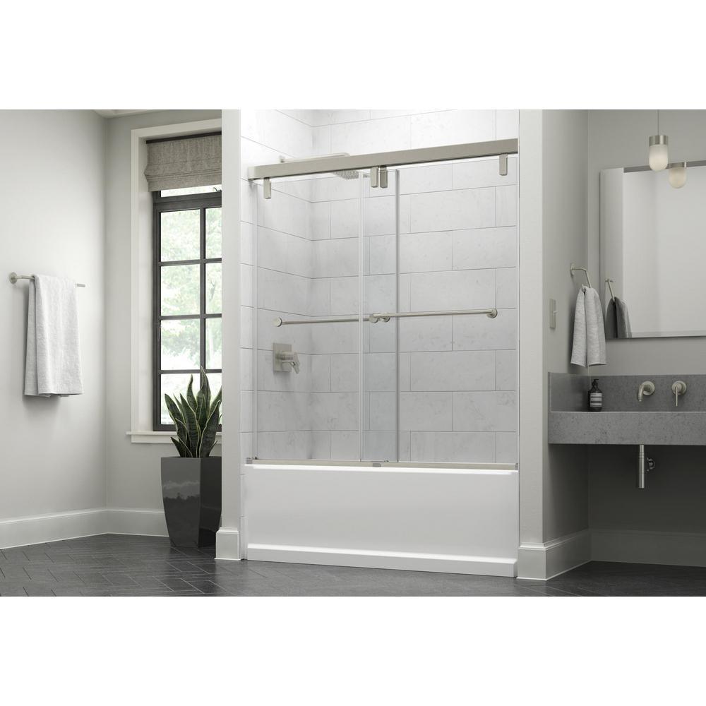 60 in. x 71-1/2 in. Mod Soft-Close Frameless Sliding Bathtub Door in Nickel with 3/8 in. Clear Glass and Lyndall Handles
