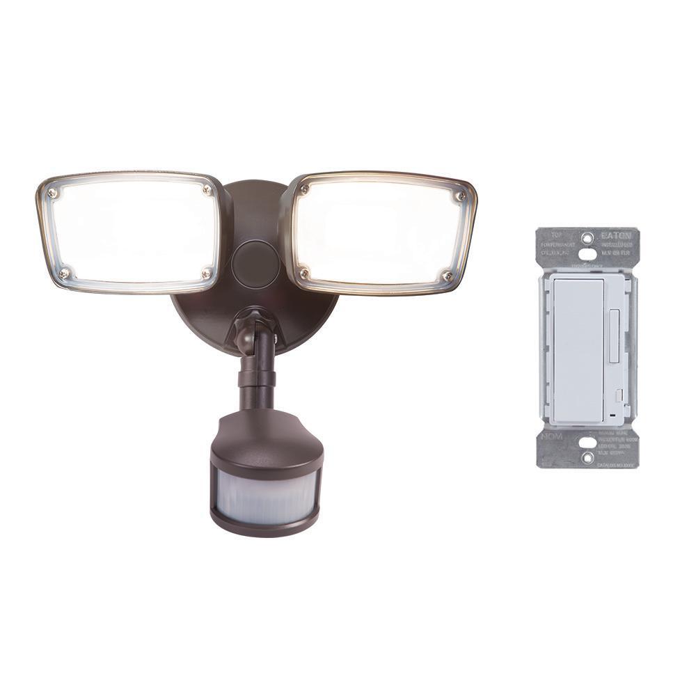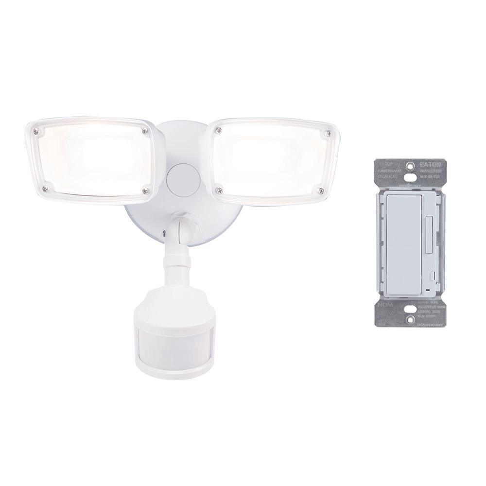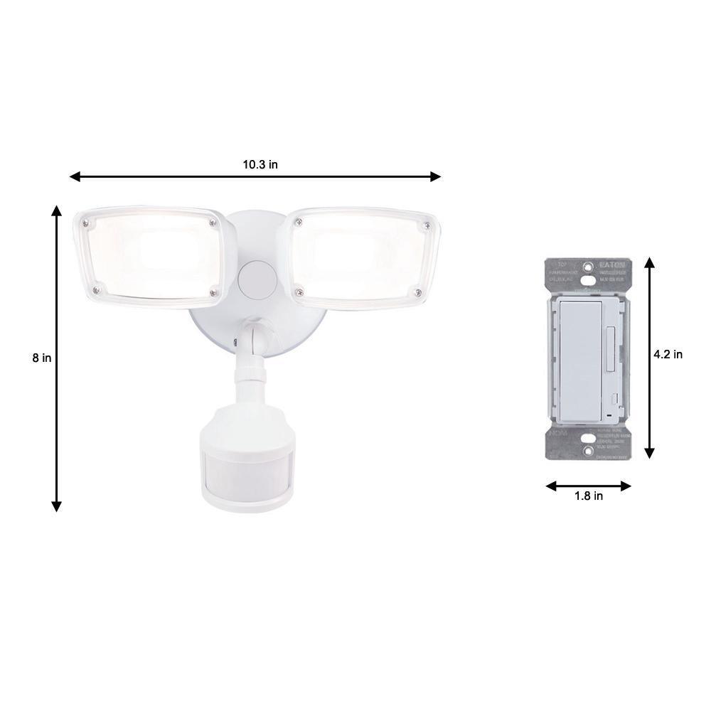 180-Degree White Smart Bluetooth Motion Activated Outdoor Integrated LED Flood Light with In-Wall Accessory Dimmer