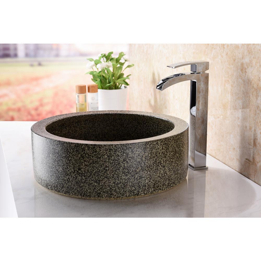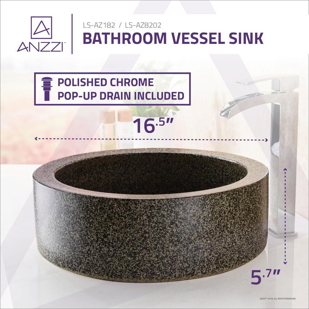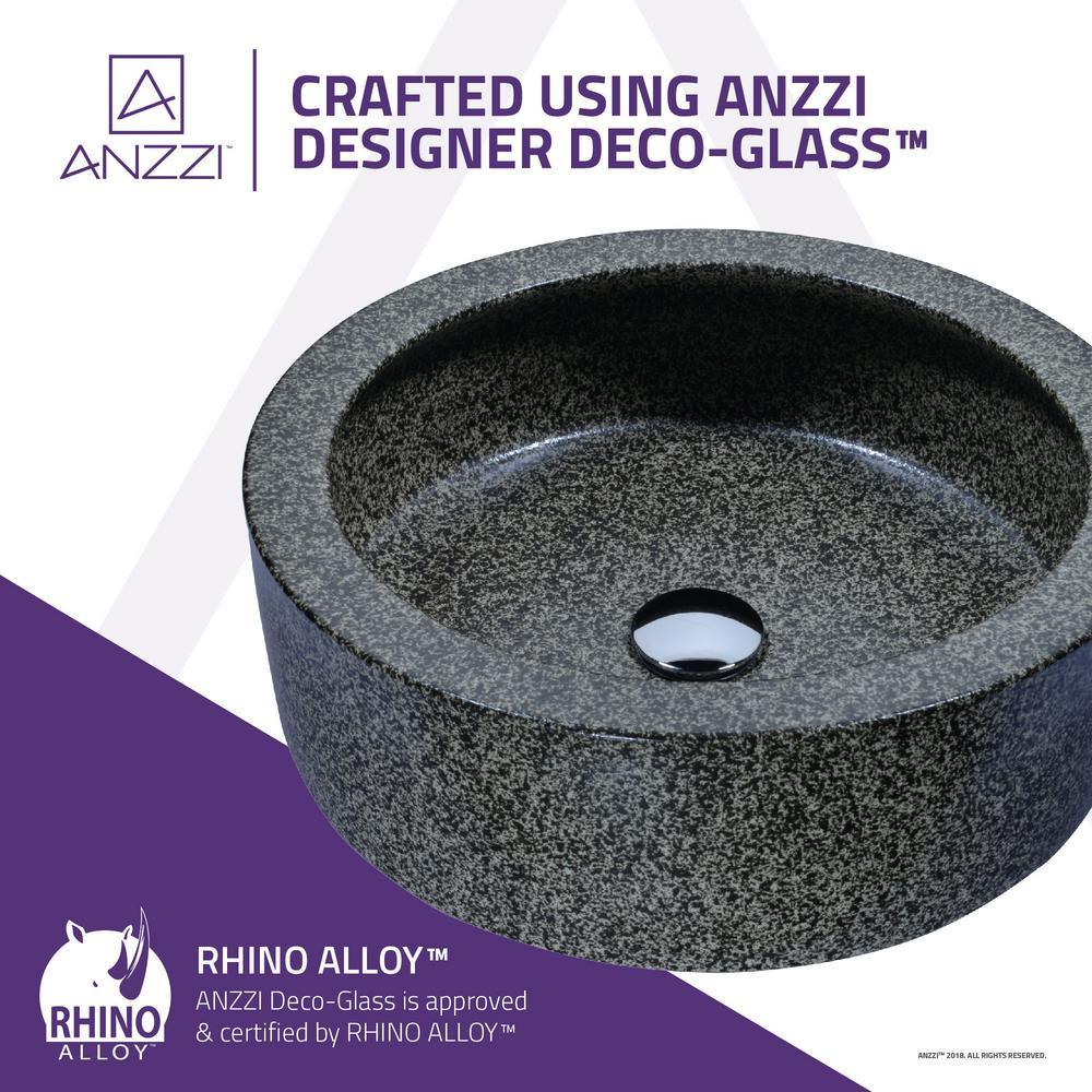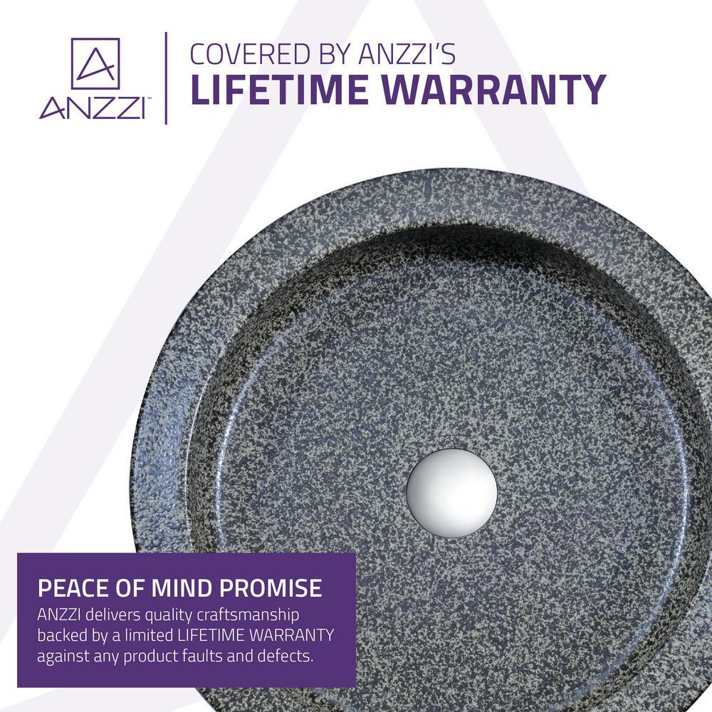 The ANZZI Samauga sink is a traditionally crafted round vessel sink adorned in a Speckled Stone finish. Each ANZZI vessel sink is formed using RHINO ALLOY certified high tempered Deco-glass material. The result is an elegantly shaped and captivating vessel centerpiece for any bathroom counter.