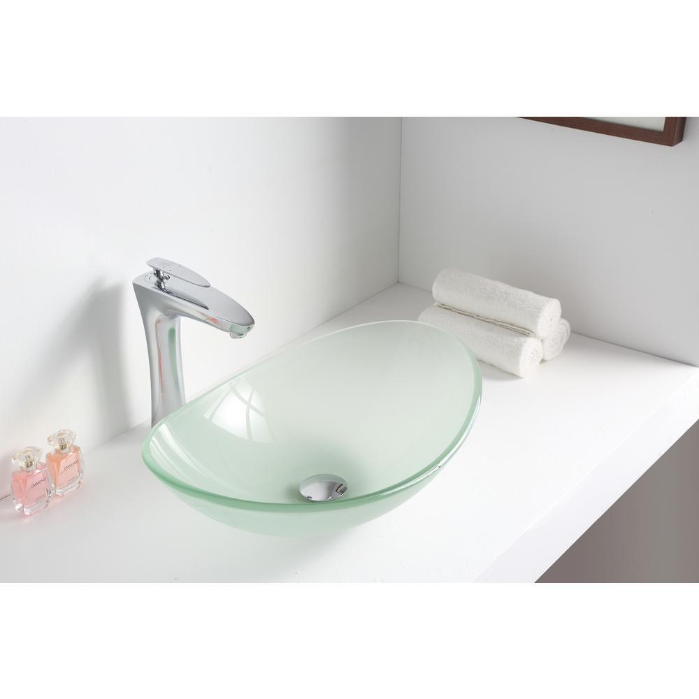 The ANZZI Craft Series sink is a traditionally crafted oval vessel sink adorned in a Lustrous Frosted Finish. Each ANZZI vessel sink is formed using RHINO ALLOY certified high tempered Deco-glass material. The result is a perfectly shaped dynamically captivating vessel centerpiece for any bathroom counter.