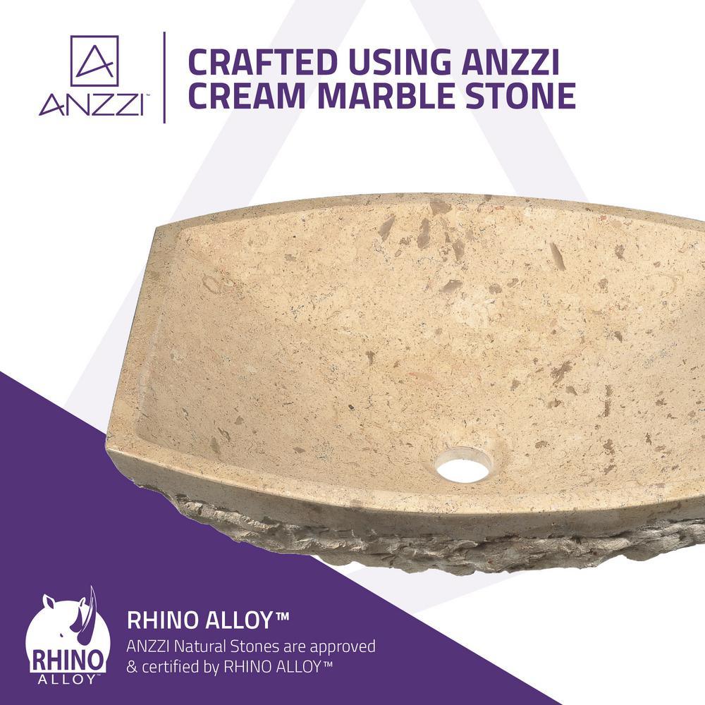 Introducing the ANZZI Moon Classic Cream Marble handcrafted natural stone bathroom sink. Crafted from handpicked, RHINO ALLOY certified samples of Classic Cream Marble ANZZI STONE the Moon is handcrafted and polished to exquisite perfection. ANZZI continues its tradition of introducing rising European trends to the North American market. The natural beauty of this sublime sedimentary sink complements many modern bathroom decor and styles.