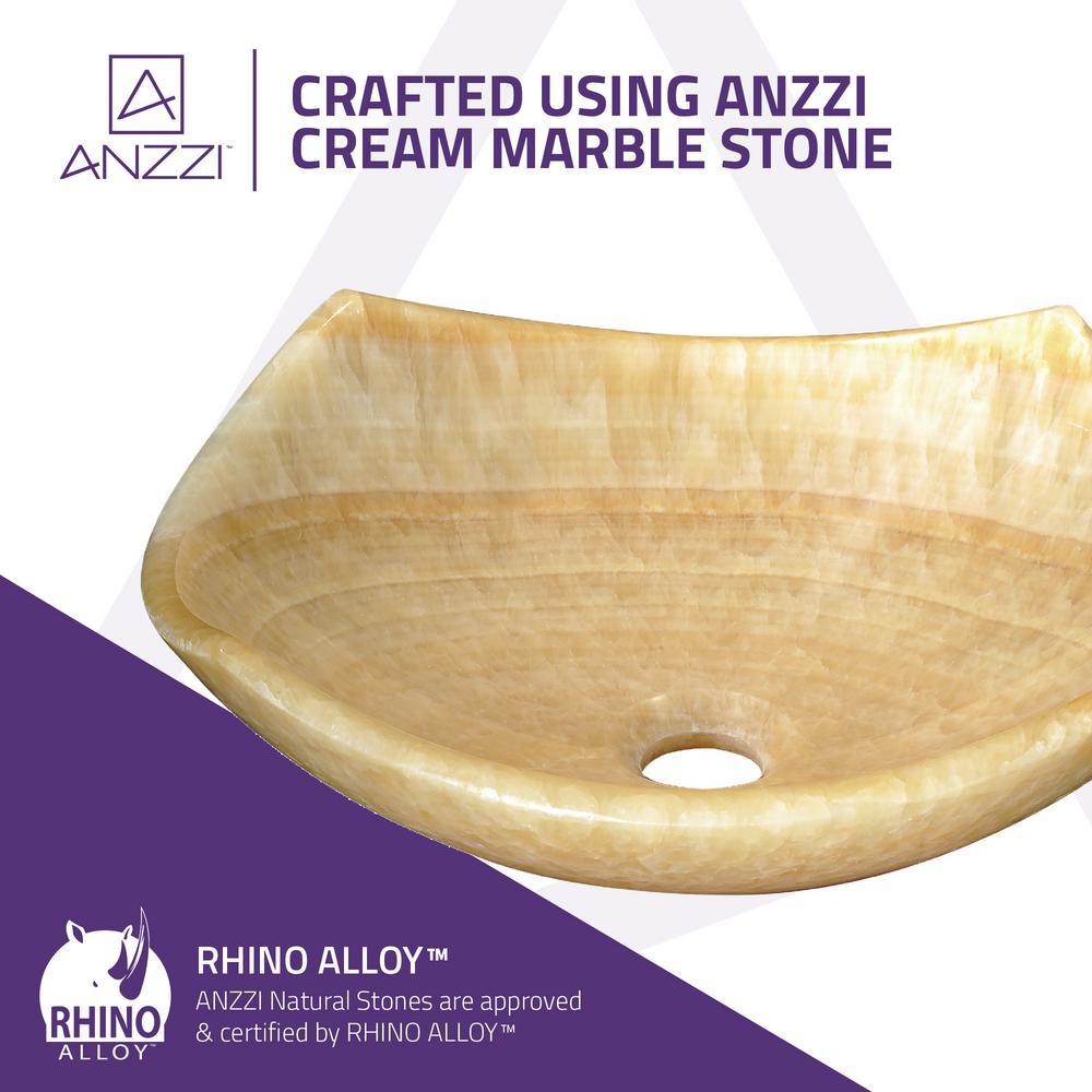The renaissance of bathroom style has arrived with ANZZIs Vespa Cream Jade handcrafted natural stone bathroom sink. Crafted from handpicked, RHINO ALLOY certified samples of Cream Jade ANZZI STONE the Vespa is handcrafted to exquisite perfection. ANZZI continues its tradition of introducing rising European trends to the North American market. The natural beauty of this sublime sedimentary sink complements many modern bathroom decor and styles.