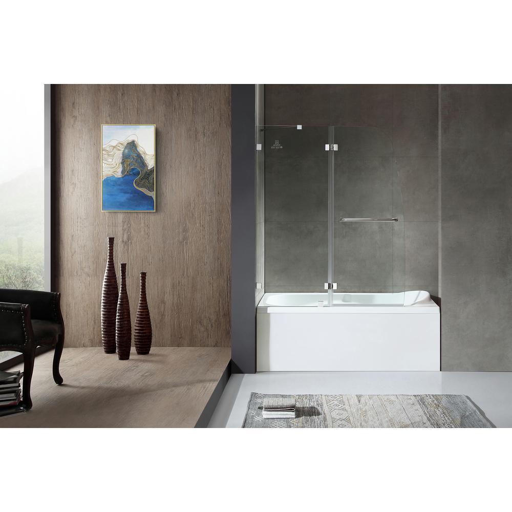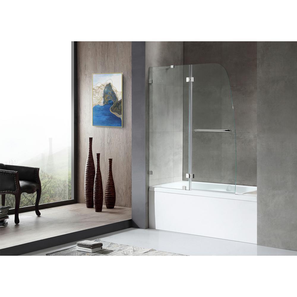 ANZZI’s frameless tub door fits to your existing tub, creating a stylish shower space that will stand out in your bathroom décor. The ANSI-certified, tempered Deco-Glass stays crystal-clear thanks to ANZZI's own Tsunami Guard shielding that repels water to prevent cloudy build-up. Rhino Alloy-certified stainless steel hardware is finished in beautiful Polished Chrome so it never loses its luster. The wide opening design makes it effortless to step in and out. Accented with a handy stainless steel towel bar.