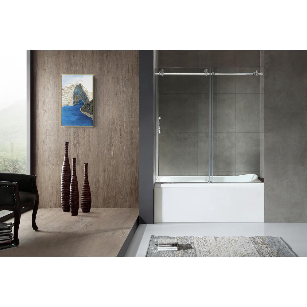 Raymore 60 in. x 62 in. Frameless Sliding Bathtub Door in Polished Chrome