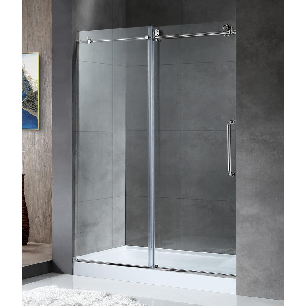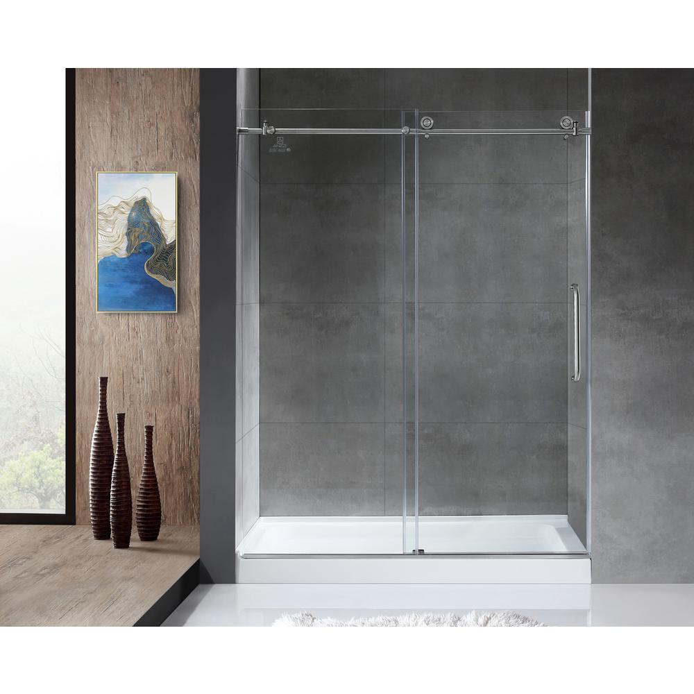 Leon 60 in. x 76 in. Frameless Sliding Shower Door in Brushed Nickel with Handle