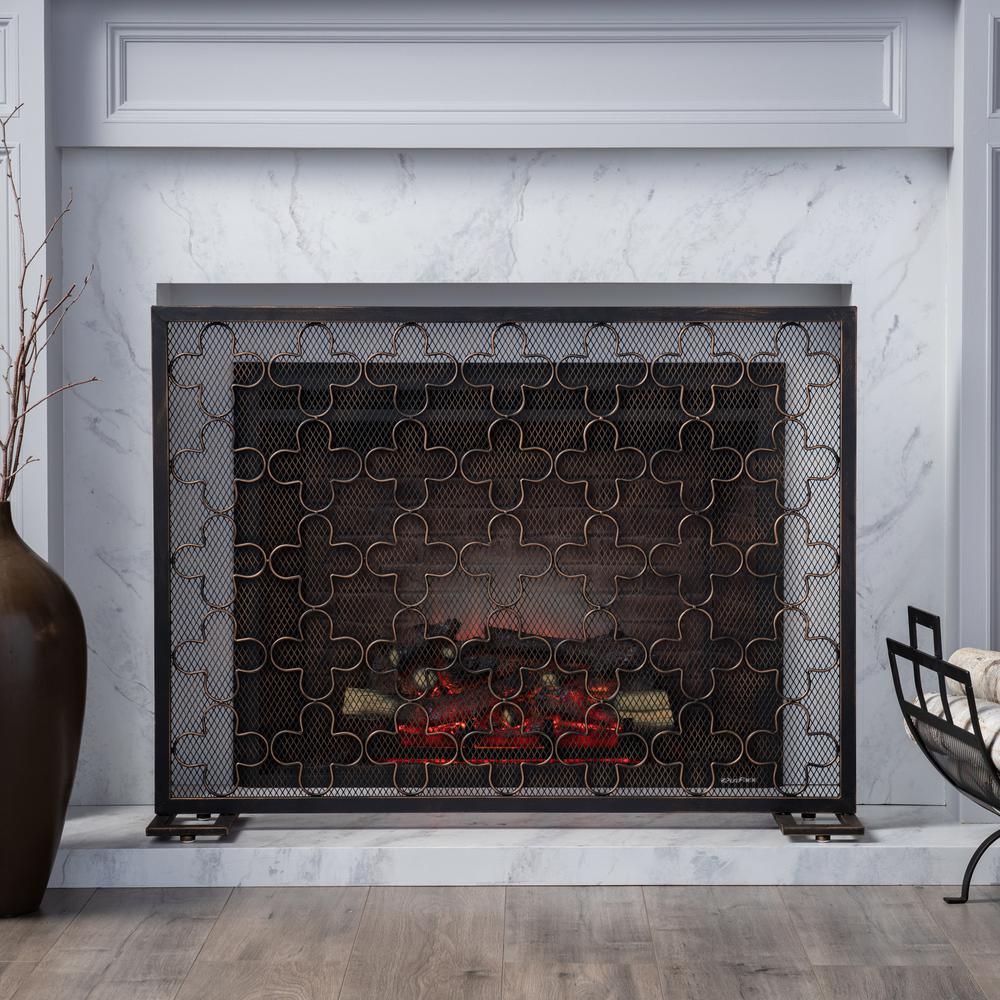 Enjoy a hot cup of cocoa next to your fireplace with the help of our charming fireplace screen. This fireplace screen offers a sleek accent to your interior space and acts as a practical accessory. This single panel screen can simply be placed in front of your fireplace to provide protection from hot embers or flying sparks with its fine mesh screen. Featuring precise, straight lines and a clover trellis pattern which highlights both functionality and style to give your home the best of the best.