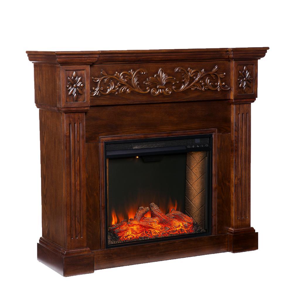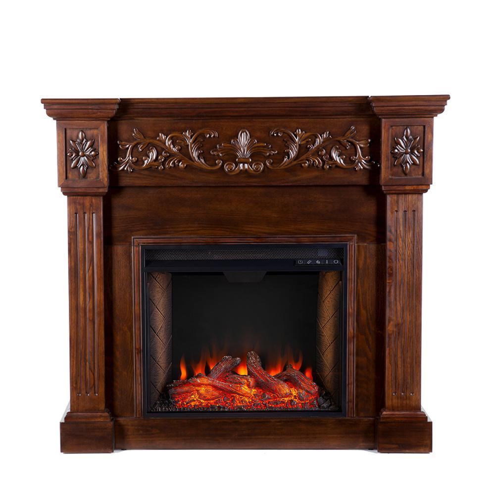 Turn on traditional style with this smart fireplace TV stand. Elegant woodwork graces the mantel, highlighting a handsome, classic silhouette, while the modern convenience of Alexa control and electric heat keep you in the present day. Glowing faux fire logs add ambiance with flickering LED flames and lifelike embers, with or without heat. Voice-enabled Alexa technology allows for seamless control from anywhere in the room. Warm up a timeless look with this electric fireplace media stand in your living room or home office.