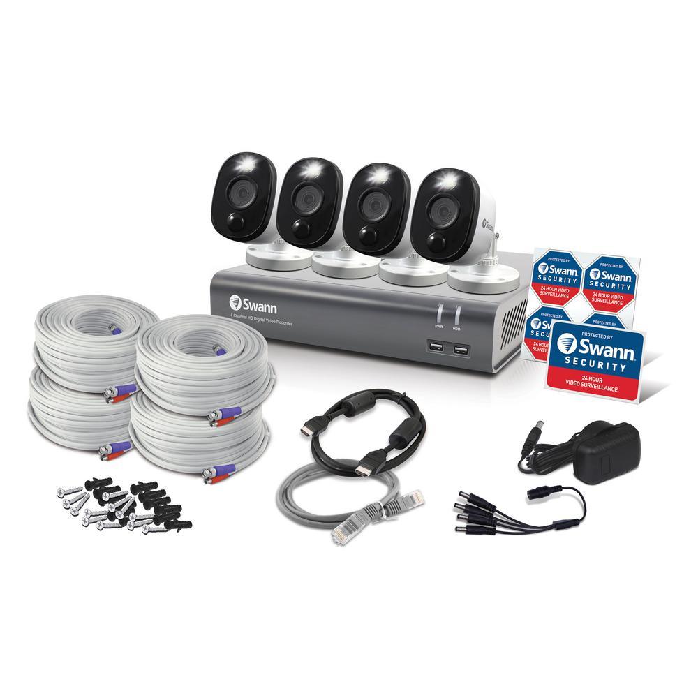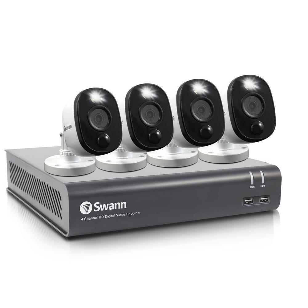 This top of the line 4 camera, 4 channel DVR-5580 wired surveillance camera system lets you see faces, logos on clothing, tattoos, stickers on boxes, license plates and powerful close-ups in amazing 4K Ultra HD. The cameras' sturdy construction gives you 24/7 protection in rain, snow, heat and all year round. Each PRO-4KMSB camera has a 90 degree viewing angle and night vision up to 150ft in total darkness and 200ft in ambient light, so no blind spot will go unnoticed.