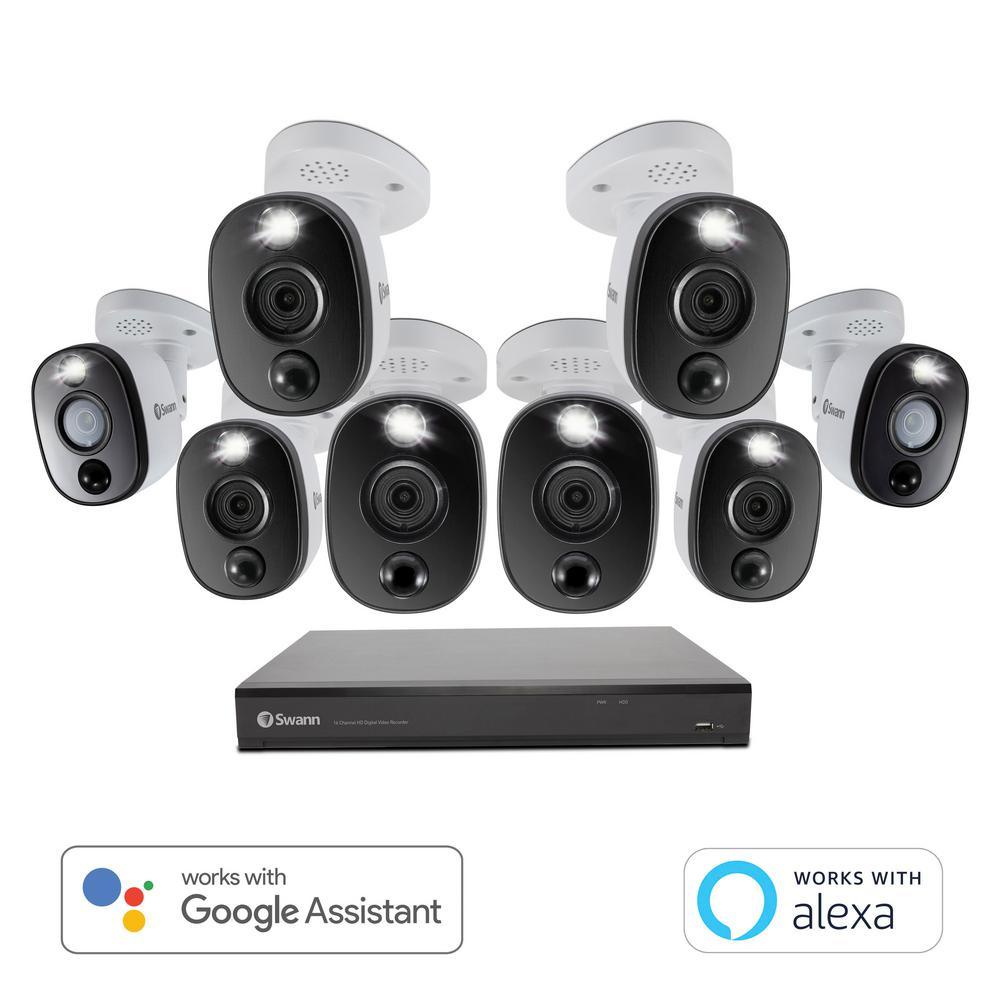 This security system is packed with the latest CCTV technology, such as weatherproof cameras with colored night vision, bright warning lights, push notifications, Dropbox integration and compatibility with the Google Assistant for voice control. Get amazing detail with 4K Ultra HD which is 4X the resolution of 1080p Full HD. Zoom in closer with unprecedented clarity to essential evidence such as license plates and facial features. See your home on your phone, live or playback, from anywhere with the Swann Security app, while the massive pre-installed hard drive can store months of footage with no ongoing fees ever.