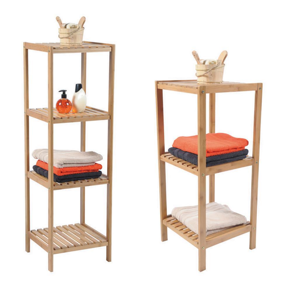 This attractive bathroom tower is made of bamboo and features 4-tier roomy bamboo shelves. This elegant bamboo bath furniture compliments any decor while adding plenty of storage space for you to store and display your essentials. Designed to be functional and stylish all at once, this bamboo tower brings the spa to your home. It can hold towels, bathroom toiletries or even decorative accessories. This bathroom tower is easy to assemble with the included hardware. Damp cloth. Length 13.4 in., width 13 in. and height 43.3 in. Color bamboo. It's an easy and elegant way to maximize your bathroom's available space while providing functional storage and shelving for all your necessities. Imported from France, made in PRC. Other sizes and colors also available.