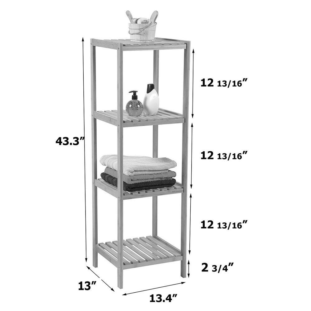 - Space-saving storage shelf: ideal for tight spaces, this 4-tier shelf creates space through its height, this shelf features a slim figure to stand in any suitable place in your house, dimensions: 43.3 in. H x 13.4 in. L x 13 in. W
