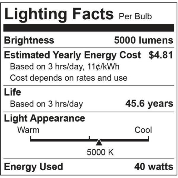 • Lifespan: 50,000 Hrs. (45.6 years Based on 3hrs/day)