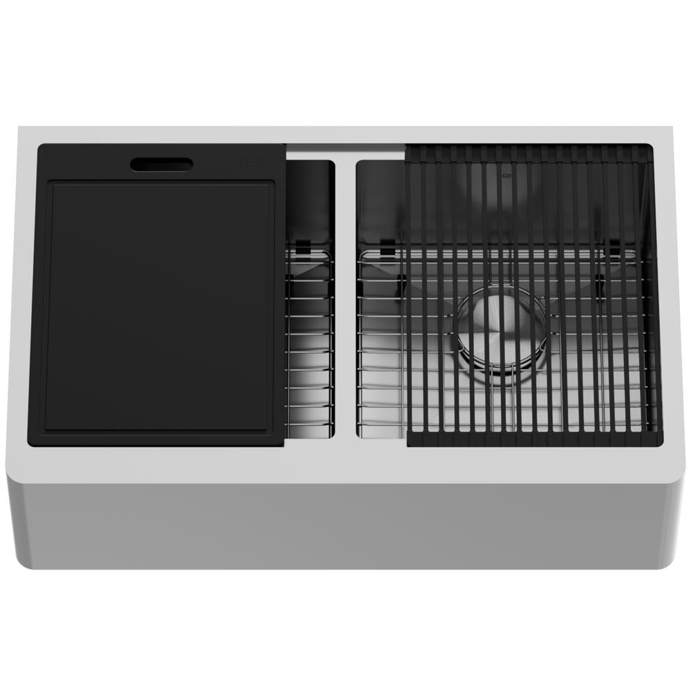 Oxford Stainless Steel 33 in. Double Bowl Flat Farmhouse Apron-Front Workstation Kitchen Sink with Accessories