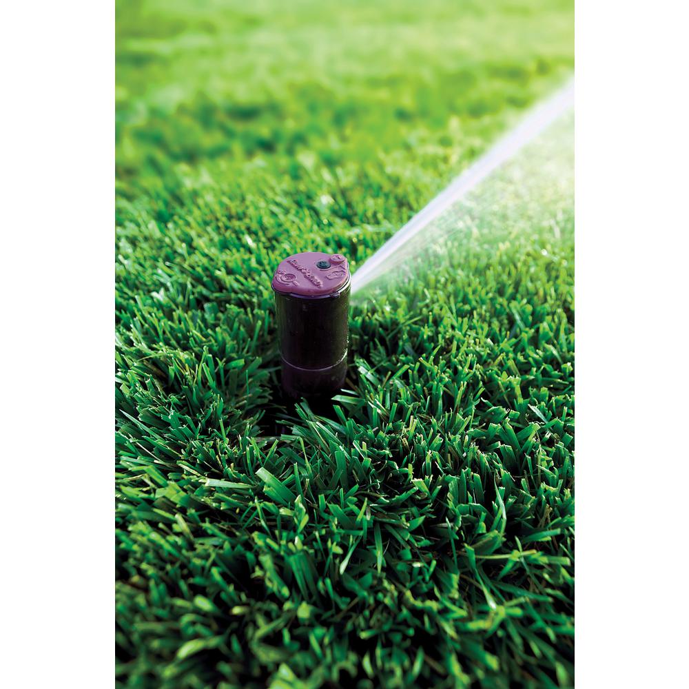 This rotor utilizes rain curtain nozzle technology, providing consistent coverage and shorter cycle times. Its gear-driven design, lubricated by water, ensures quiet performance and self-flushing capabilities to maintain optimal spray efficiency. With a 40-360 degree arc and the ability to rotate in both directions, this rotor is suitable for a wide range of applications. The 4 inch pop-up allows for clearance of tall grass, while the 3/4 inch female threaded bottom inlet makes installation simple. Operating at a pressure range of 25-65 psi and a flow rate of 2.3-3.8 GPM, this rotor is perfect for non-potable water sources, easily identifiable by its purple spray cap.
