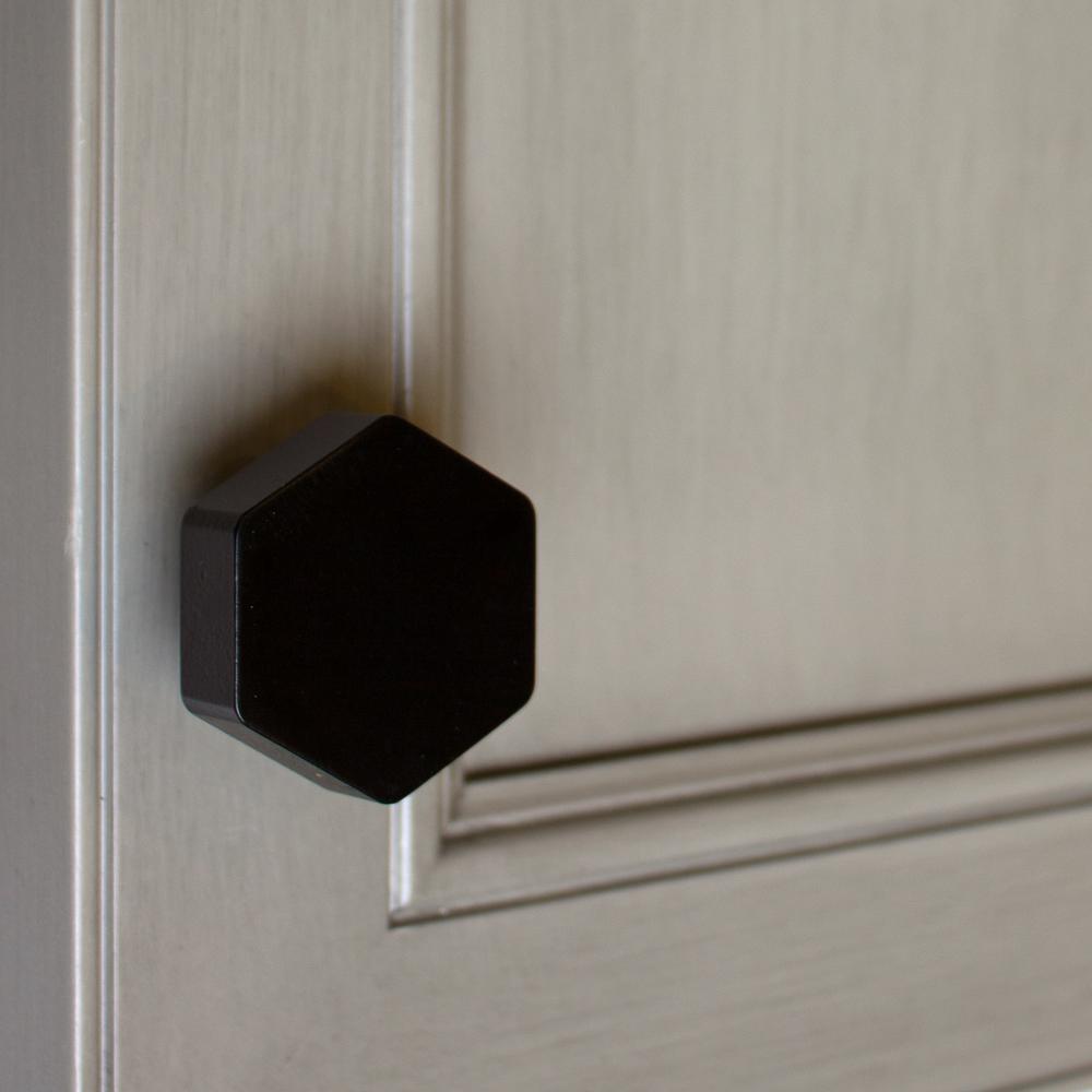This bold heavy-weight hexagon knob will give you a modern look in your kitchen, laundry room or bath. The thick hexagon shape gives you an easy-to-grip handle. Matching pulls are also available.
