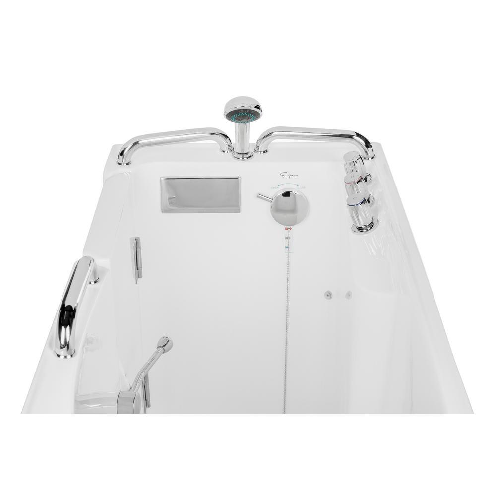 • Outside of the walk-in bath is equipped with a surrounding handrail built in to the rim of the bath, this way, you have a stable grip at all times during your bath, another grab bar is installed inside the bath for added stability and safety while sitting, standing and bathing