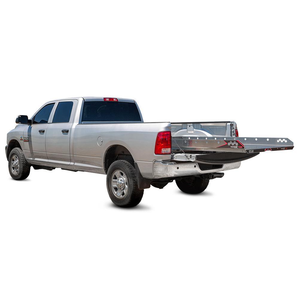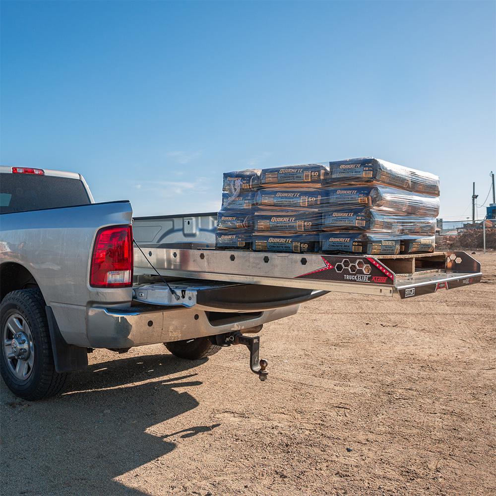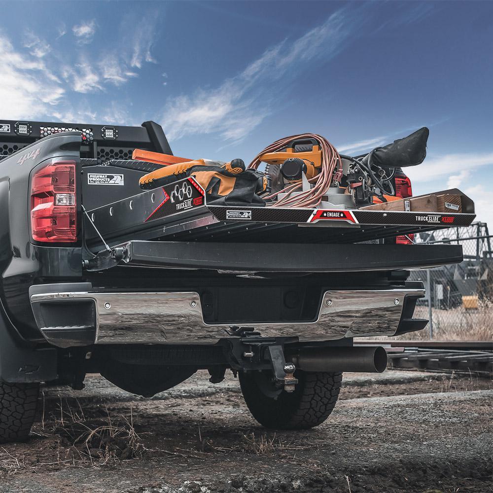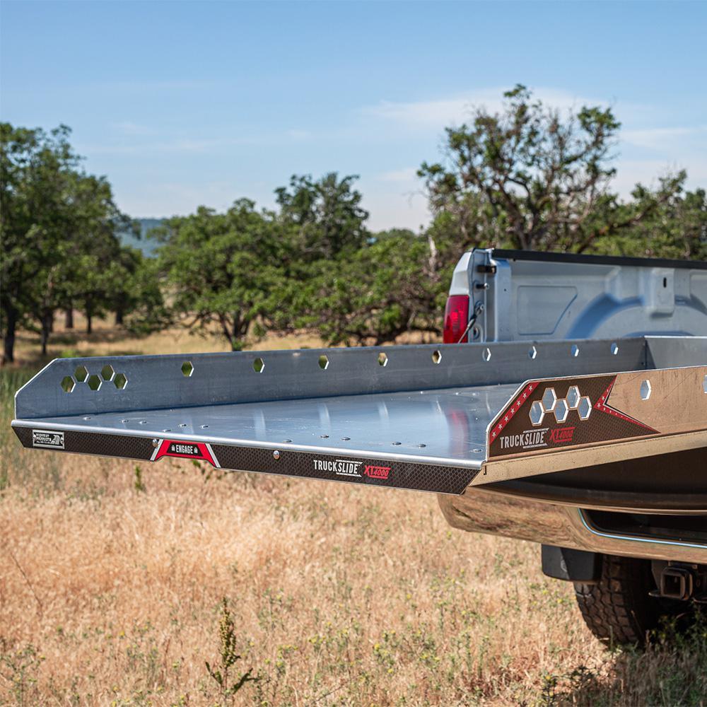 HIGHWAY PRODUCTS XT4000 Truck Slide is built Work Truck Tough for extreme commercial applications and fits Chevy, Ford, Dodge RAM, Toyota and Nissan trucks. It pulls out easily to allow quick access to all your job site materials, tools or other heavy cargo, its especially convenient when access to your bed is limited by a canopy, tonneau cover or a HIGHWAY PRODUCTS Pick Up Pack. Injuries are the enemy of any job site. Climbing into your bed or lifting materials from awkward positions puts you and your team at risk. The Truck Slide XT4000 makes it easy to roll out the contents of your bed, bringing it quickly in your reach. You'll stay organized, work efficiently and save your back. The XT4000 is the highest capacity truck slide on the market and is tested to handle up to 4,000 lbs. when extended. The tray is formed aluminum with no welds leaving no weak points to crack and can be used in any conditions without concern of deterioration. Quickly secure your cargo with punched tie-down points along the tray sides. The 10-Gauge galvanized steel rails with 2 in. sealed chrome steel bearings provide rugged durability and we've designed steel plunger rods that slam shut locking the slide in position every 10 in. to secure heavy loads when the pull handle is disengaged. The XT4000 Truck Slide is 1 option in our line of truck bed slides that are built to last forever using all-metal construction and are 100% guaranteed by our Transferable Lifetime Warranty.