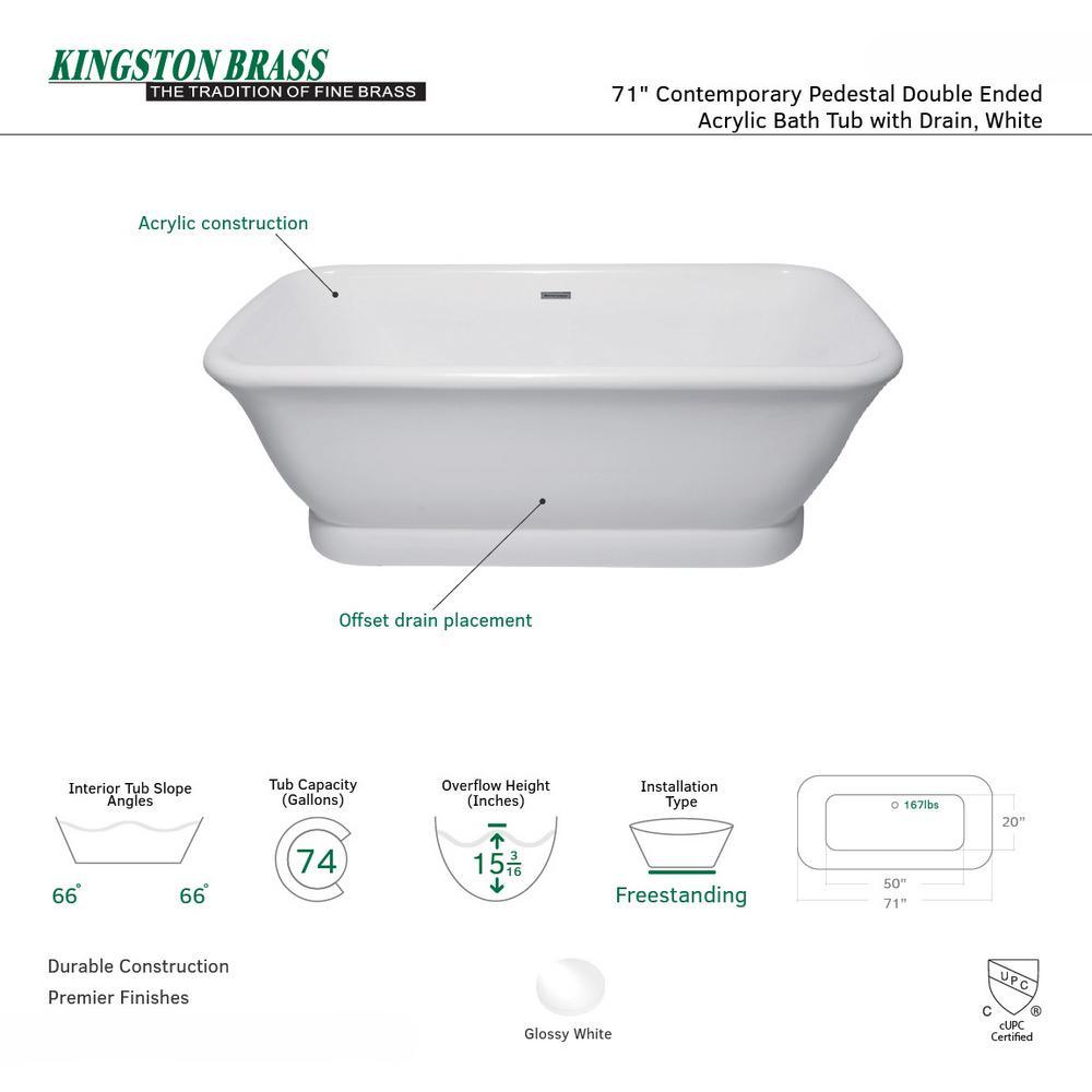 Transform your bath to a personal oasis with this large double ended acrylic tub. With gentle curves and smooth lines, this tub is a perfect fit for those with transitional or contemporary designs in their home. This tub pairs well with freestanding tub faucets or wall mounted tub faucets.