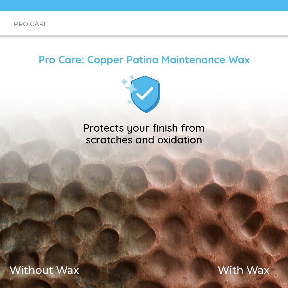The Pro Care: Copper Wax is an outstanding product created to preserve the patina on your copper appliances by producing a protective coating on the surface. This wax can be applied to cool or warm, clear-coated or non-coated areas. If the surface is extremely hot, let the area cool down before applying the wax. This product also tends to work better when warmed up, as it will easily set into the pores of the metal. The Pro Care: Copper Wax consists of a perfect blend of the finest waxes known for finishing copper, along with the most effective binders, rust and UV inhibitors. Before using this product, thoroughly review the instructions and guidelines. The manufacturer is not responsible for damage resulting from misuse of this product. KEEP OUT OF REACH OF CHILDREN AND PETS. Individual results will vary.