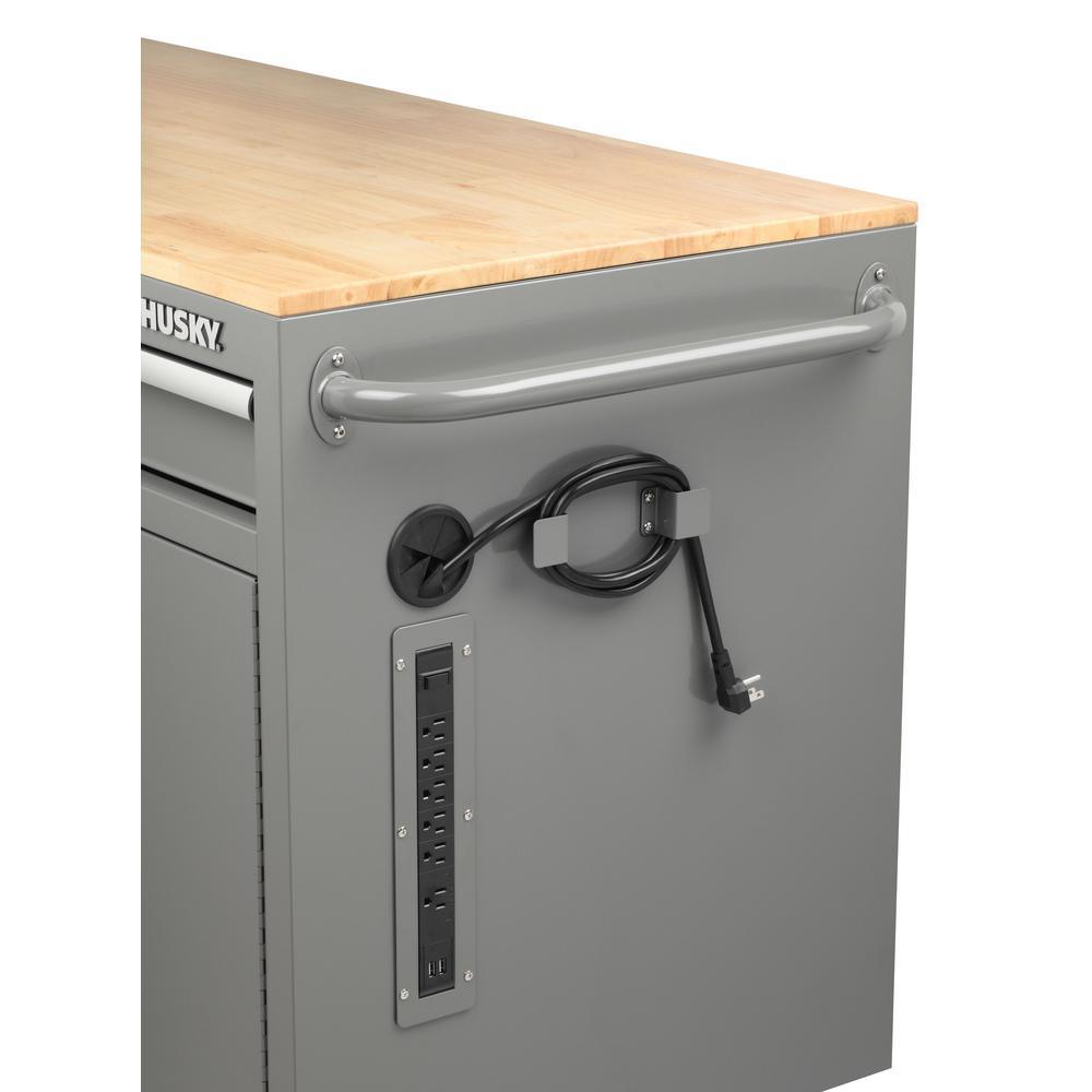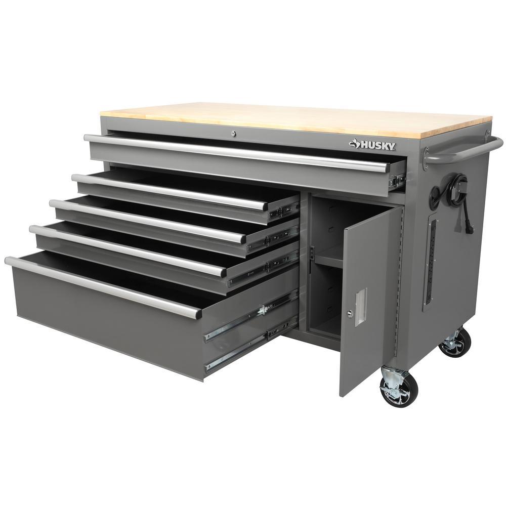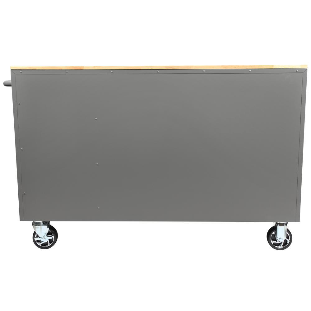 56 in. W 5-Drawer 1-Door, Deep Tool Chest Mobile Workbench in Gloss Gray with Hardwood Top