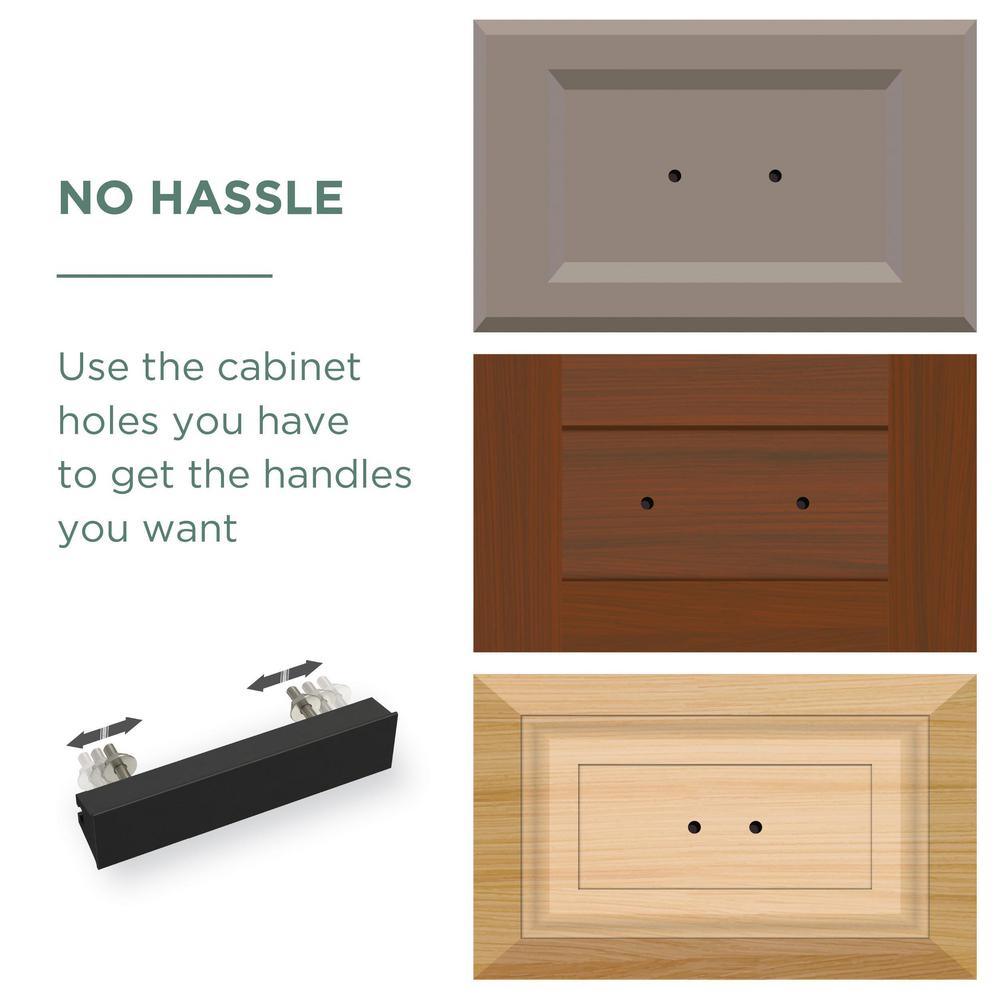 • Developed with a special rear facing track, this handle glides along fasteners placed in cabinet drill holes to accommodate your size