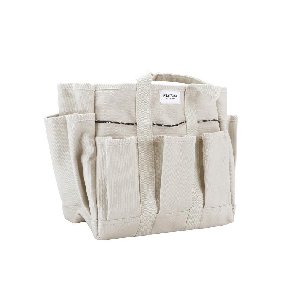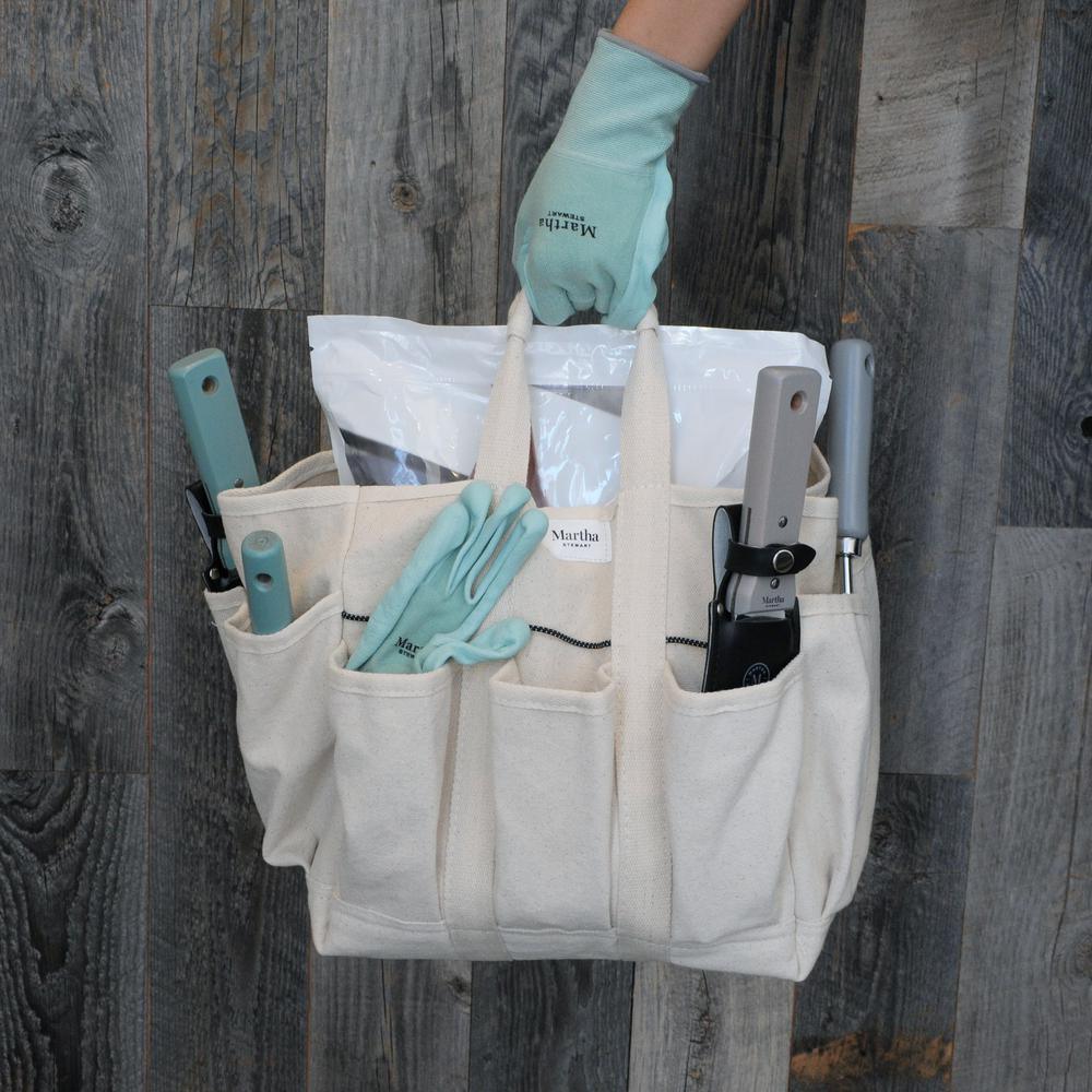 The Martha Stewart Heavy-Duty Canvas Bag is great for all of your gardening tools. Expertly stitched of premium-quality, heavyweight cotton canvas, this spacious bag can safely stash a variety of essential tools in its many pockets from trowels to triangle hoes, to pruning saws and shears, gloves and more. With reinforced carrying handles and a sturdy shoulder strap, its just the right size to tote around the yard, garage or garden.