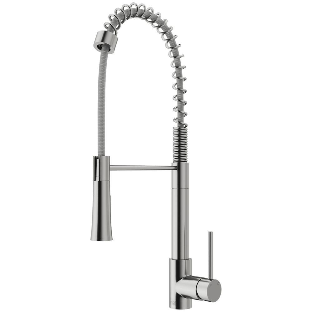 The VIGO Laurelton Pull-Down Spray Kitchen Faucet features a dual action, pull-down spray head and 360° swivel spout that is extendable up to 22 inches. These features, as well as the faucet's sleek lines and tall arch, bring modernity to any kitchen. Solid brass construction and corrosion resistant finish ensure durability.