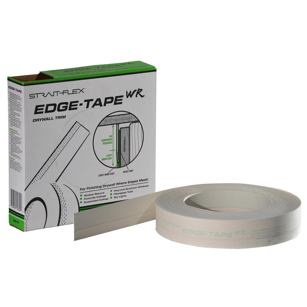 Edge-Tape, a paper-faced, laminated composite edge tape from Strait-Flex, creates clean, straight edges, is twice as fast and uses half the compound compared to tear-off bead. Edge-Tape is installed by the finisher and not by the carpenter and is installed with standard compounds. This 2 tape finishes drywall edge for Commercial Top Out applications where drywall meets concrete ceilings, suspended ceilings, window returns, fiberglass tubs and sky lights. The tapes outer edge features a diamond punch pattern for a superior bond, faster drying, with no rippling or blistering. 100 ft. rolls reduce waste up to 20% compared to tear-off bead.