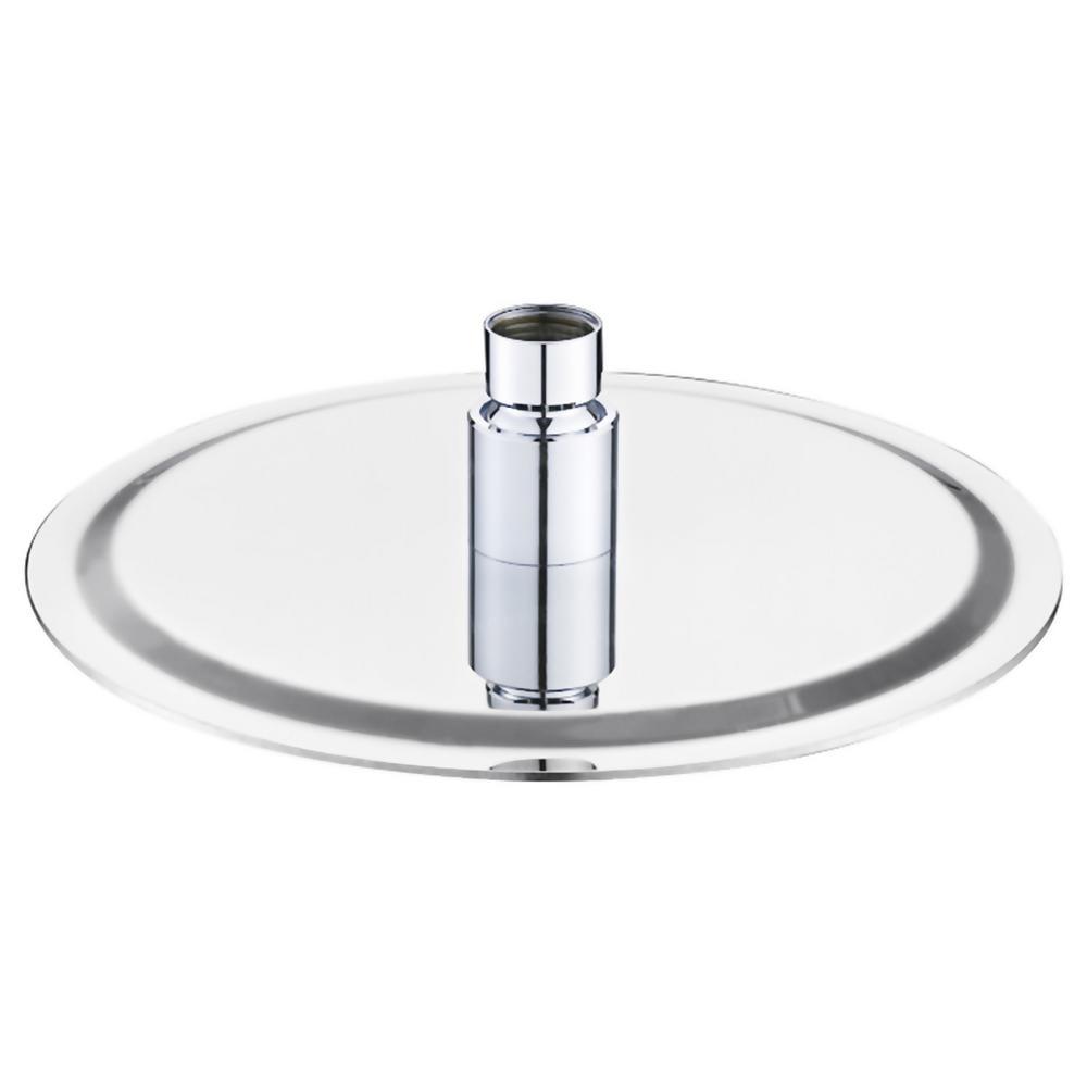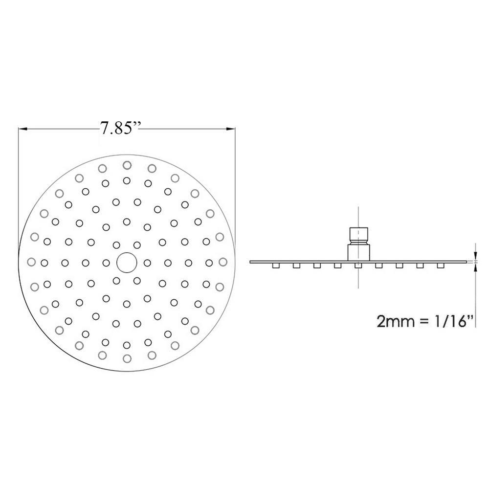Seek shower time bliss with this AKDY 7.85 shower head. Formed from brass and acrylic, this shower head is a fusion of beauty and function. Measuring in a circular shape with 7.85 all around, this shower head provides plenty of showering coverage with its 100 rubber nozzles. Maintenance is easy, as they can simply be rubbed clean. This shower head will bring a creative edge to any and all modern bathroom designs. Using 1/2" standard sizing, this model is perfect and easy to use. Furthermore, this shower head is covered by a one year limited parts warranty.