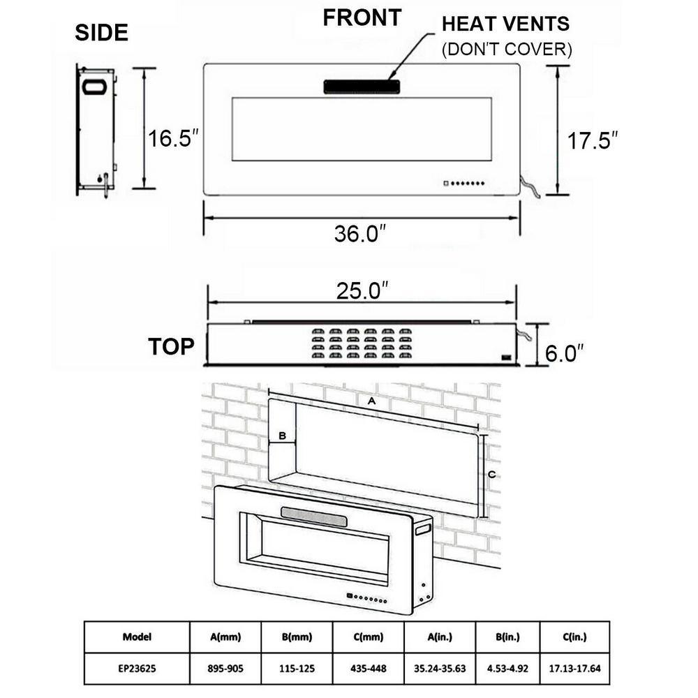 6 in. W Recessed Electric Fireplace In-Wall or Wall Mounted Electric Heater in Black