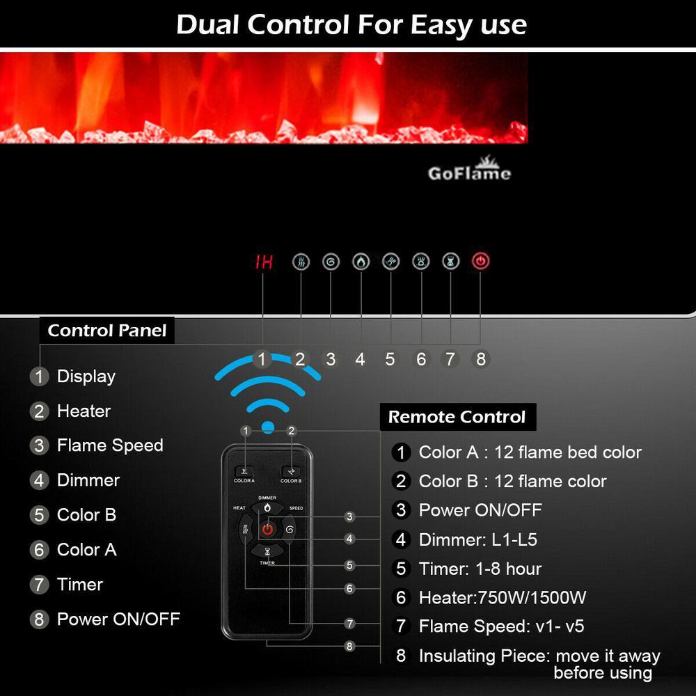 Our brand new electric wall-mounted fireplace is your best choice to warm up your room in Winter. Different from traditional fireplace, this modern electronic fireplace is energy efficient without real flames and any emissions or pollution. 12 flame color and 12 flame bed color modes for you choose, giving you batter visual experience. Equipped with the wall mount bracket, it gives your many options to fit your home or office demand. Don't hesitate to buy 1.
