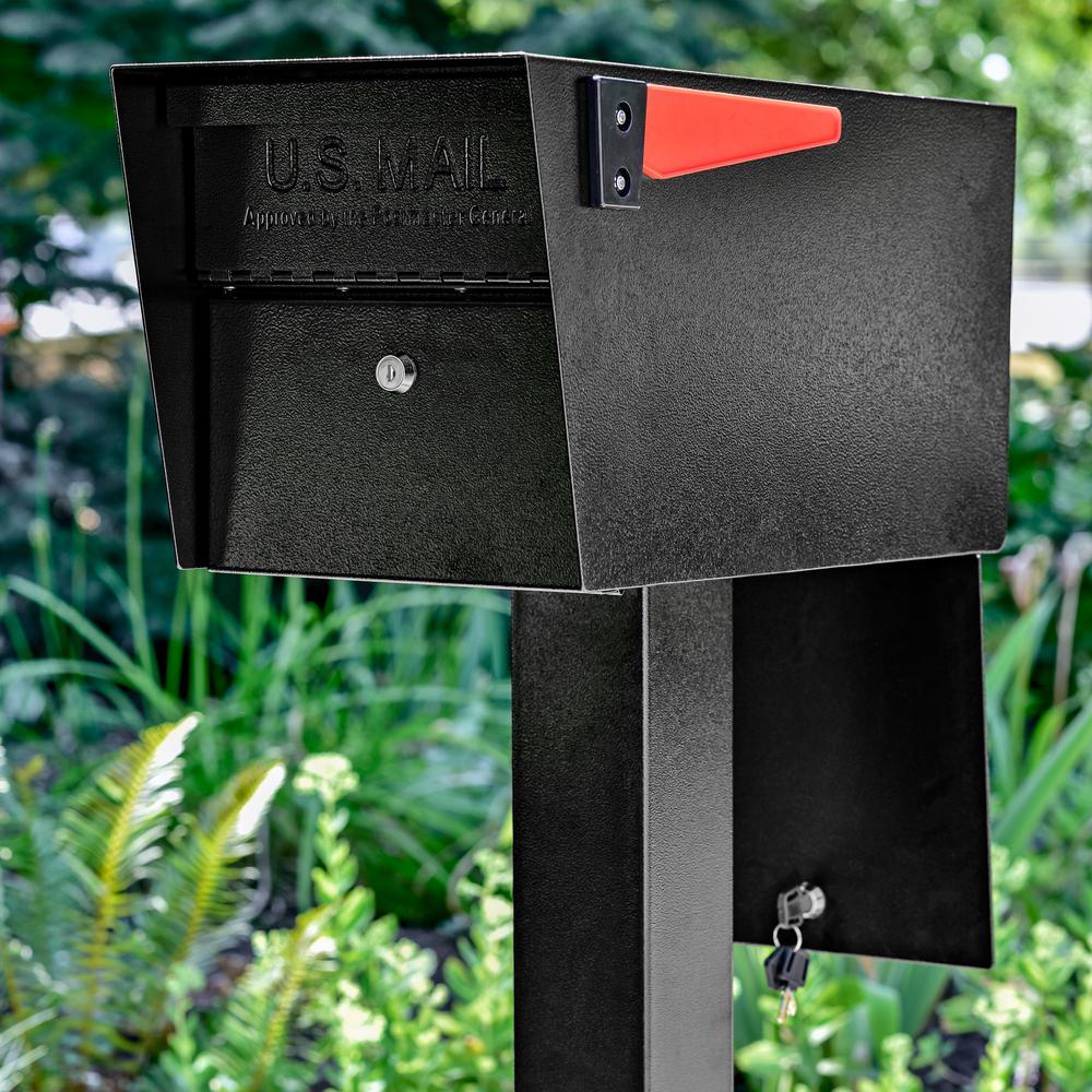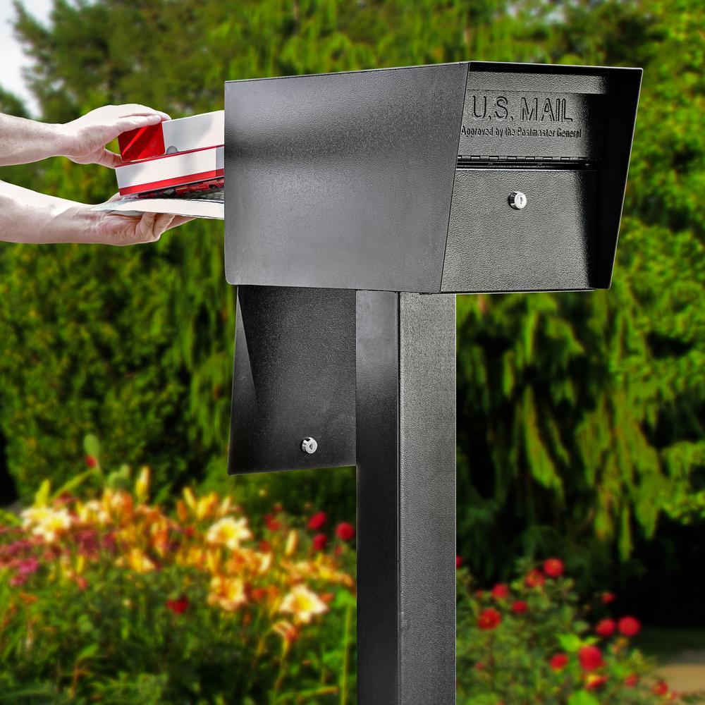 Street Safe Latitude Front/Rear Locking Black Post Mount Mailbox with High Security Reinforced Patented Locking System