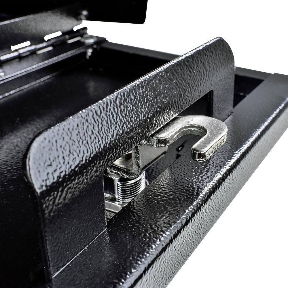 • PATENTED anti-pry latch locking mechanism featuring a chrome-alloy tempered steel hook cam