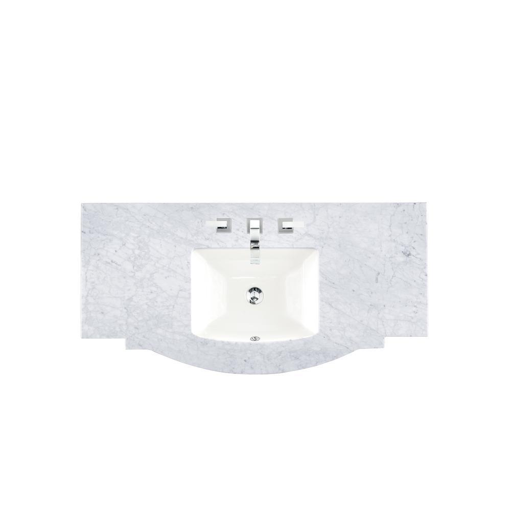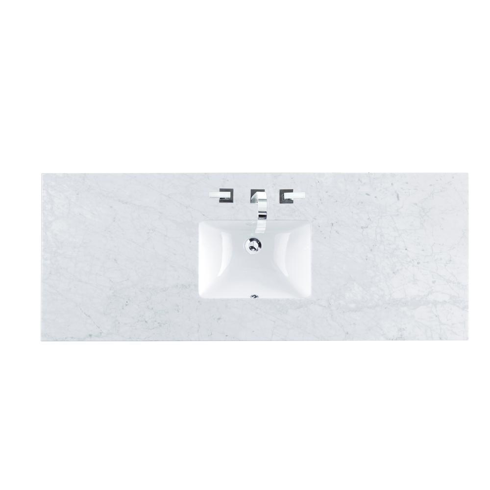 Carrara 60 in. W Marble Single Basin Vanity Top in Carrara White with White Basin